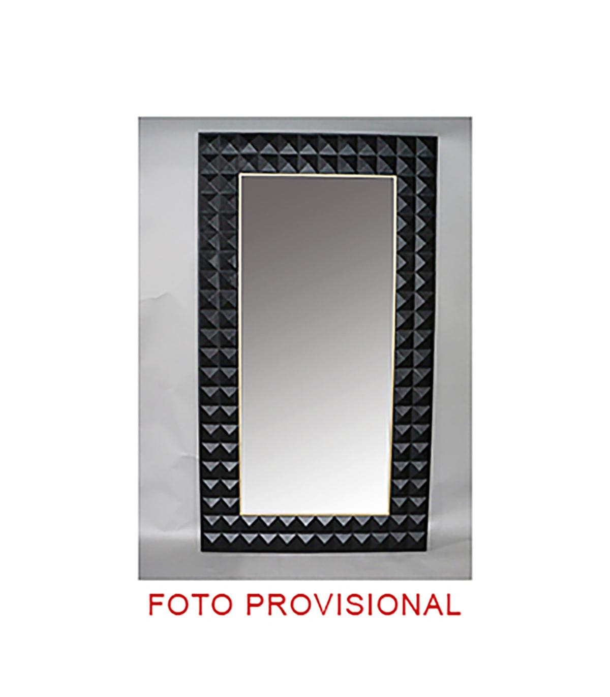 Espejo fabricado en espejo combinado con madera de fresno en color negro y hierro en color dorado.