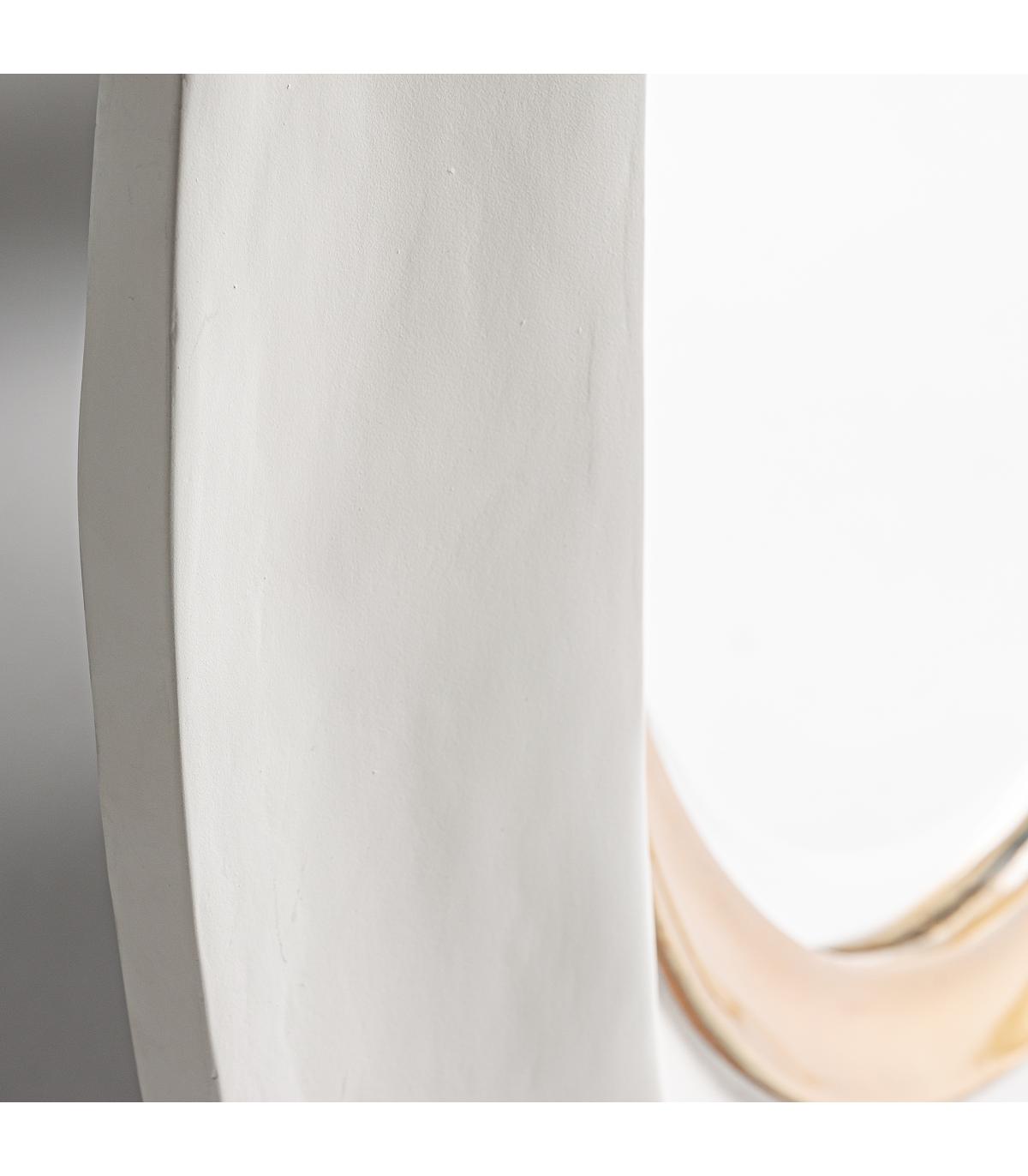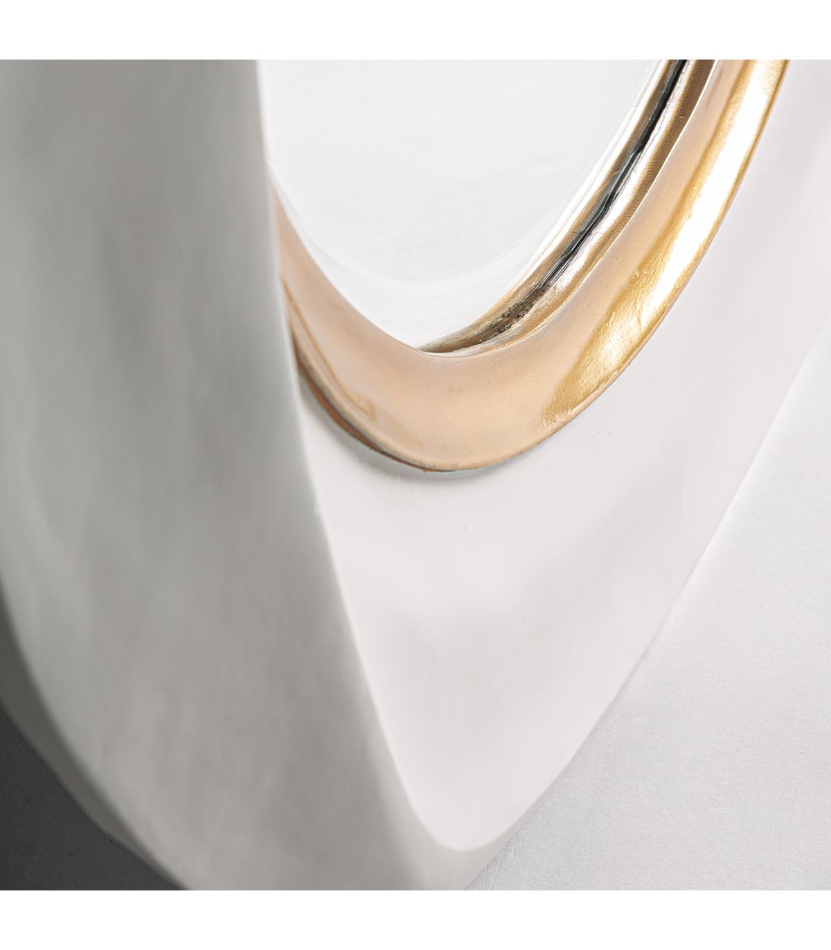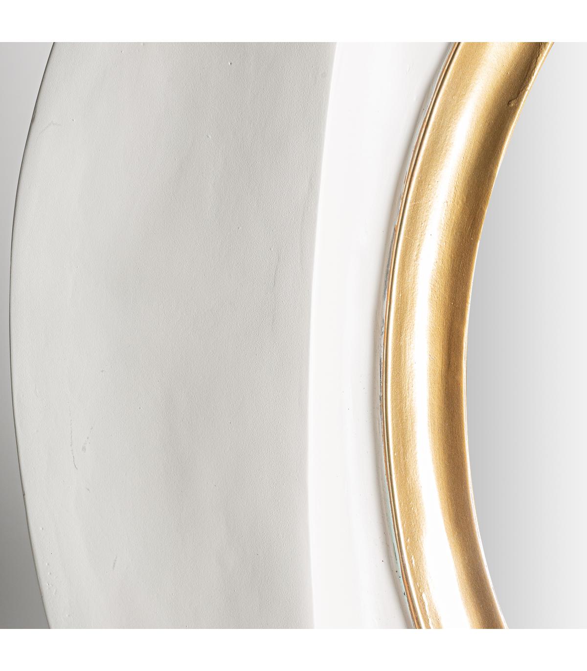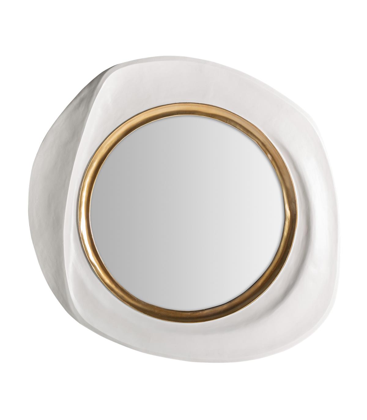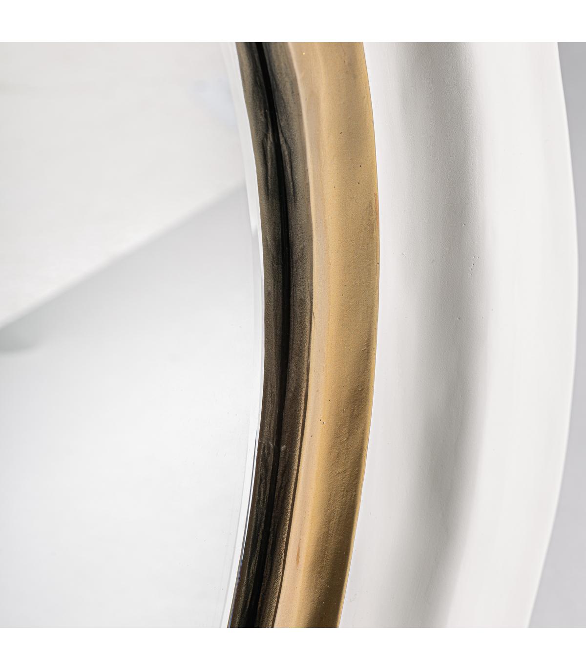 Espejo riley de estilo contemporáneo fabricado en resina en color blanco combinado con hierro en color oro y espejo.