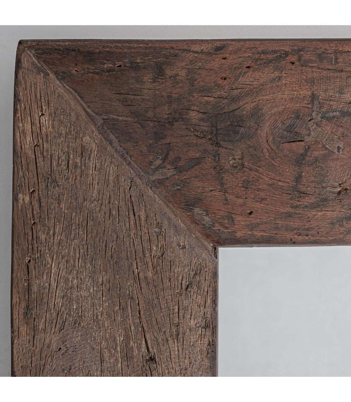 Espejo fabricado en madera de pino reciclado en color marrón combinado con espejo.