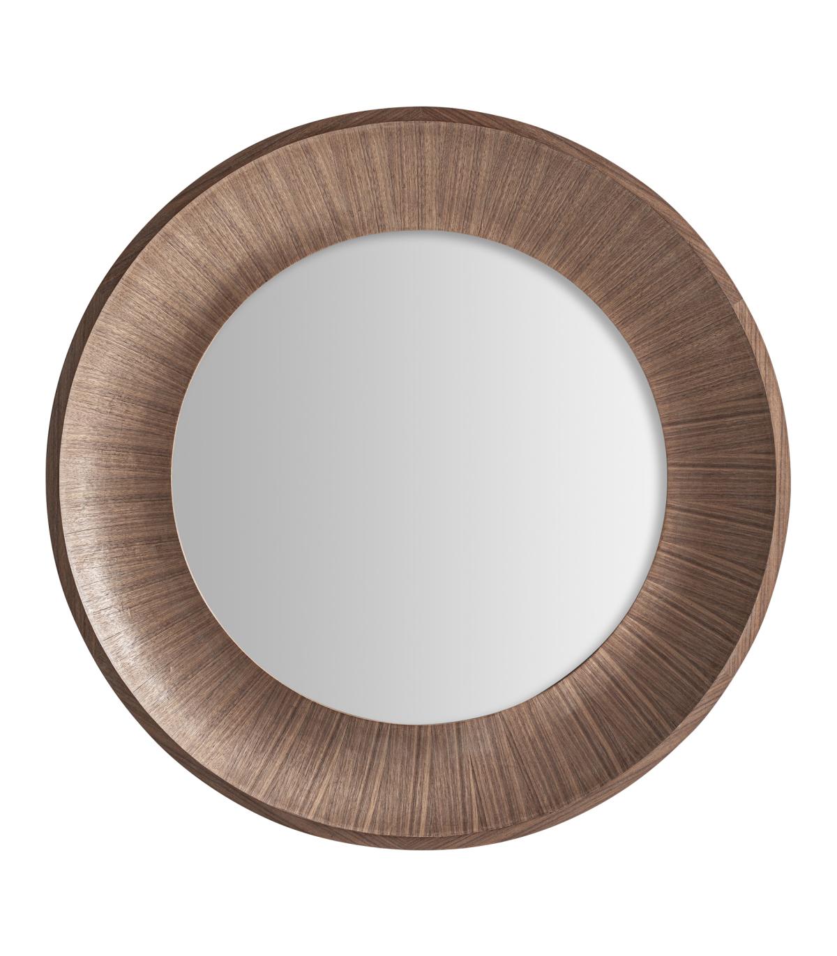 Espejo Zermatt de estilo art deco fabricado en espejo combinado con madera nogal en color marrón claro y madera dm en color marrón.