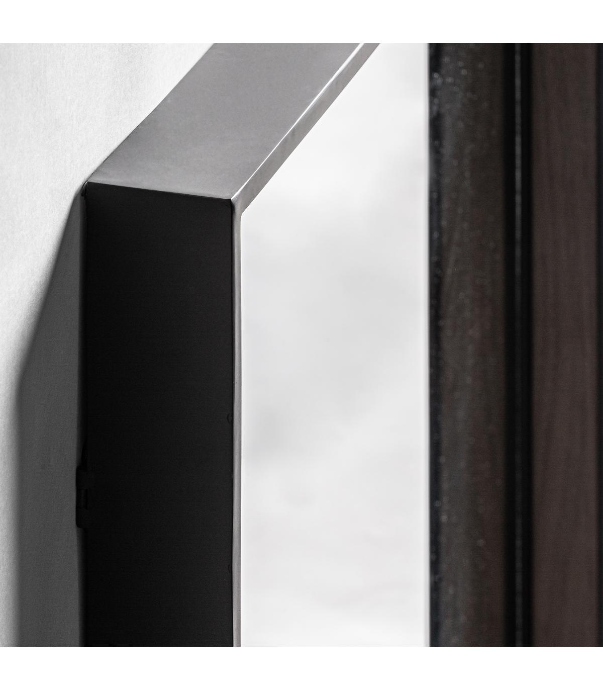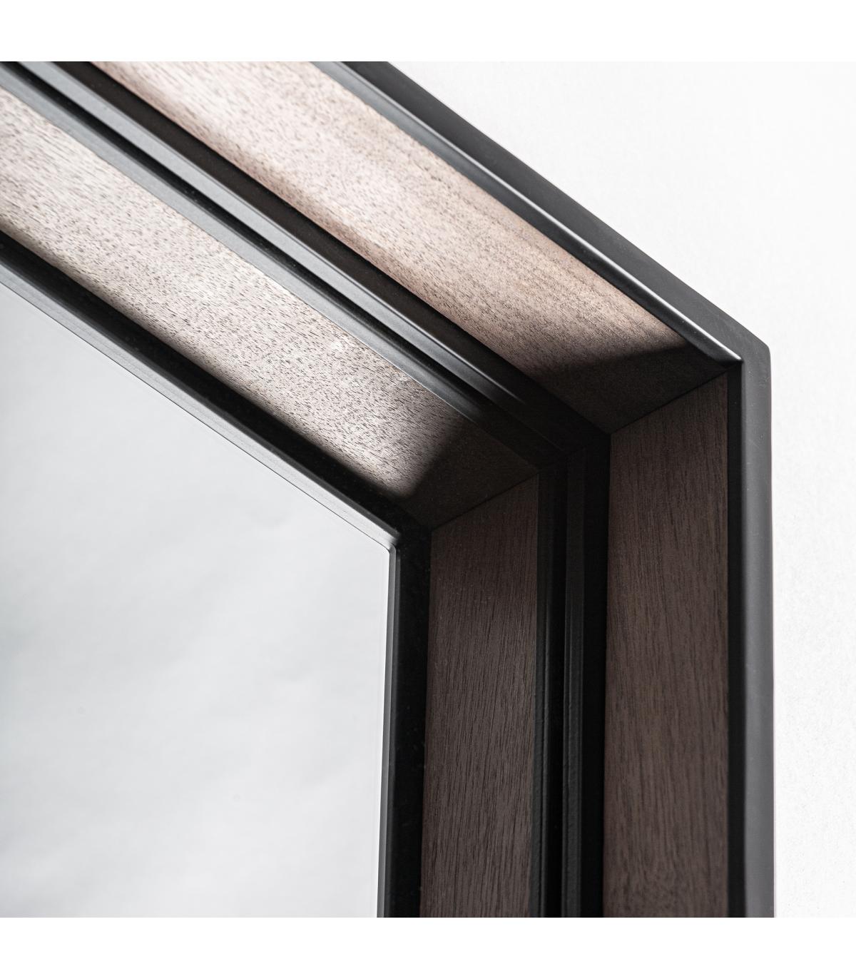 Espejo Berhan de estilo clásico fabricado en hierro en color negro combinado con espejo y madera dm.