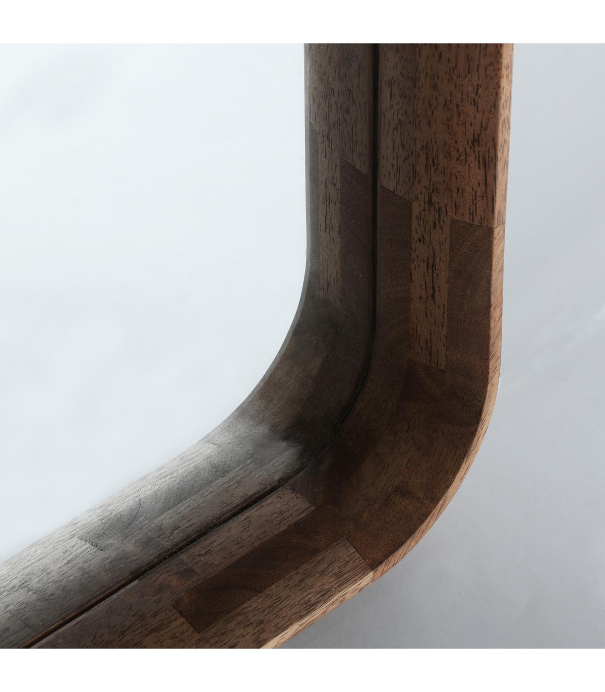 Espejo Lubeca de estilo contemporáneo, fabricado en madera de caucho en color marrón, combinado con madera dm en color marrón y espejo.