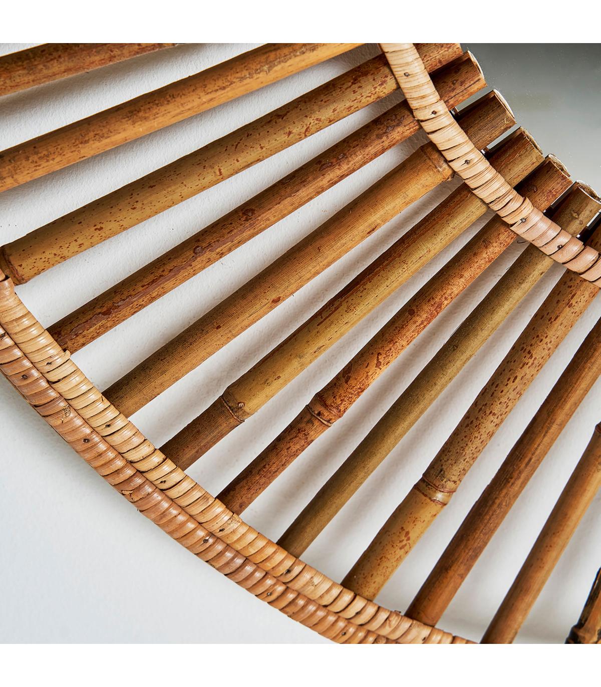 Espejo redonda arteaga de estilo contemporáneo, fabricado en bambú en color marrón, combinado con espejo.