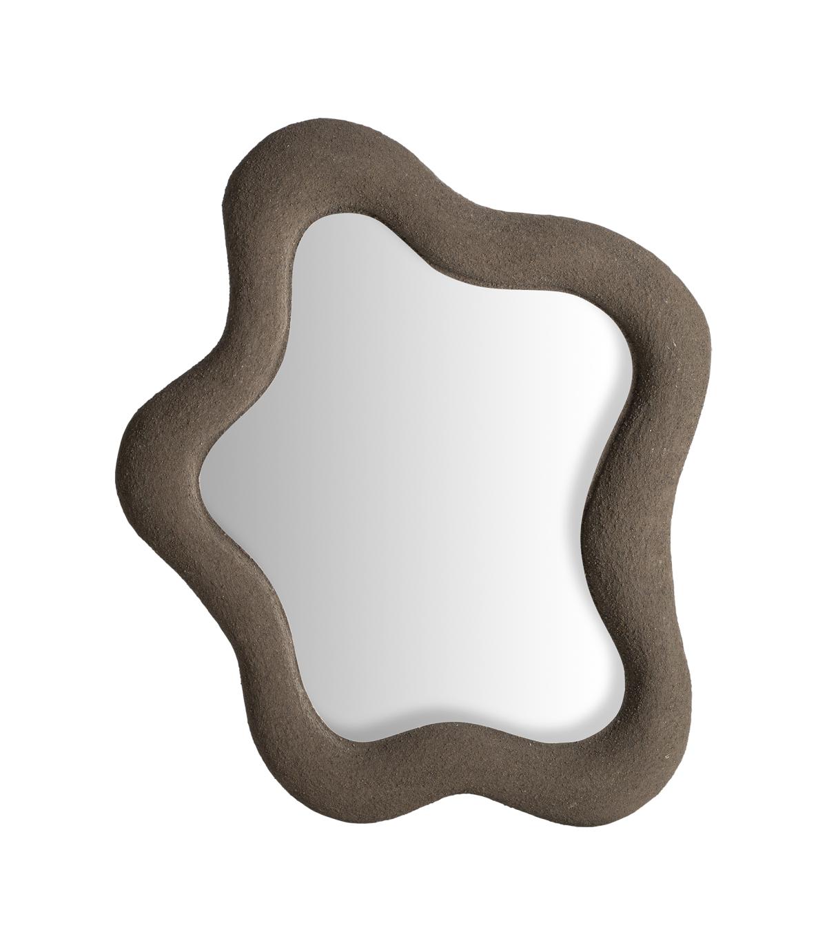 Espejo de estilo contemporáneo fabricado en resina en color marrón.