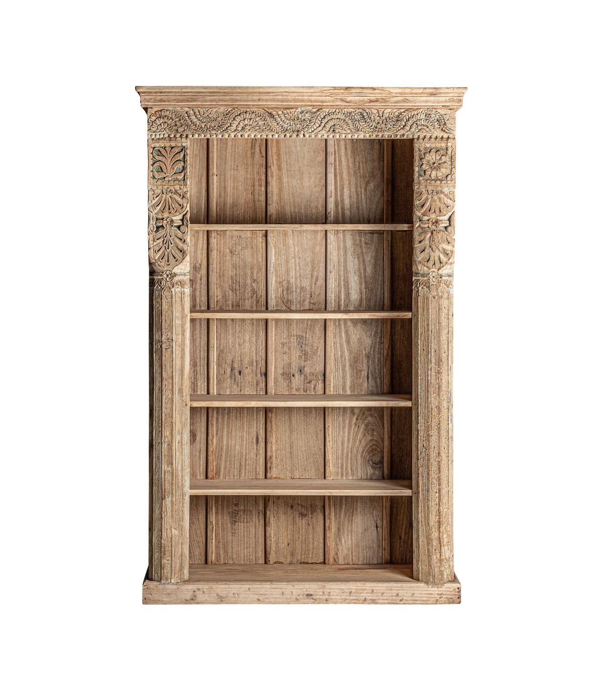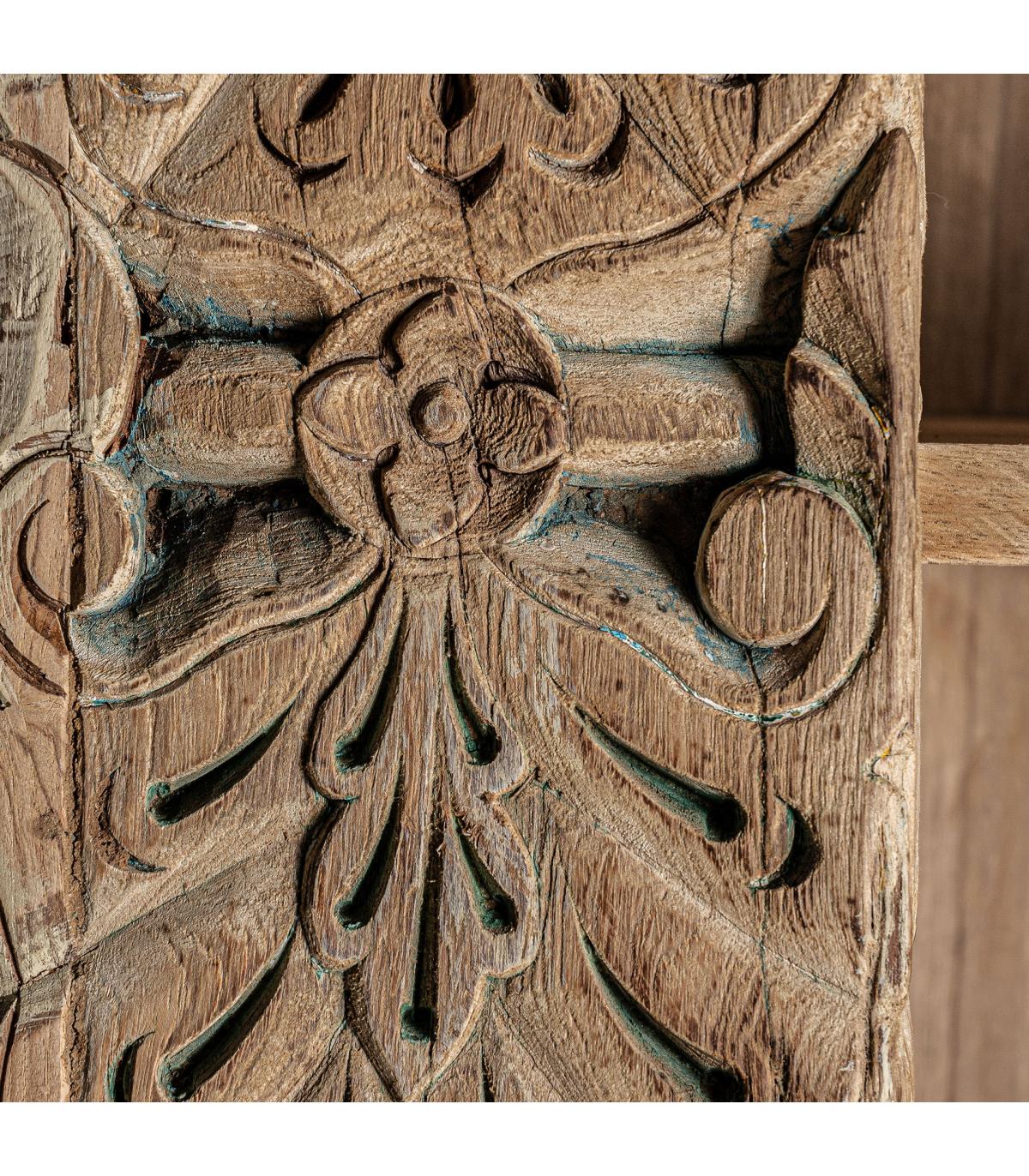 Estanteria Tedim de estilo étnico fabricado en madera de mango en color marrón con acabado envejecido combinado con madera de teka.