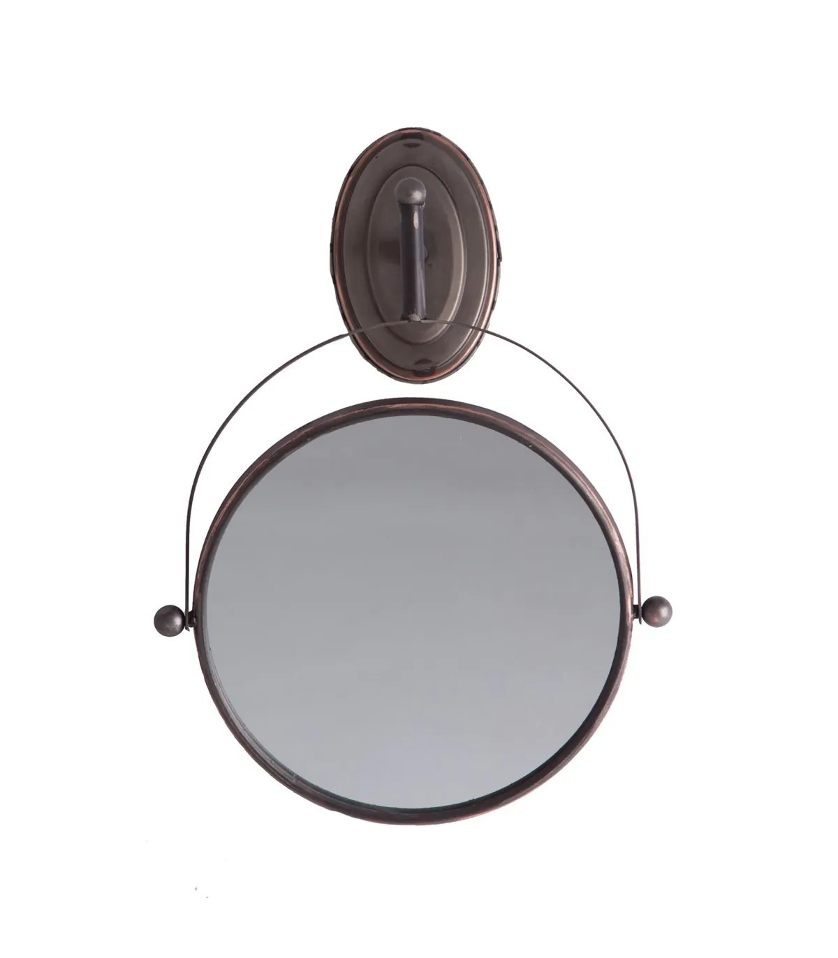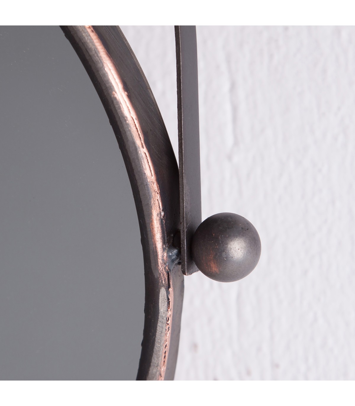 Espejo redondo reken, en color plata envejecido, de estilo industrial. Fabricado en hierro, combinado con espejo.