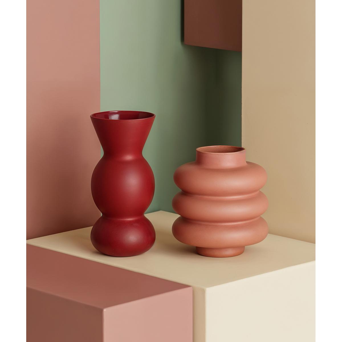 Jarrón Liam de estilo contemporáneo, fabricado en cristal en color chocolate con acabado mate.