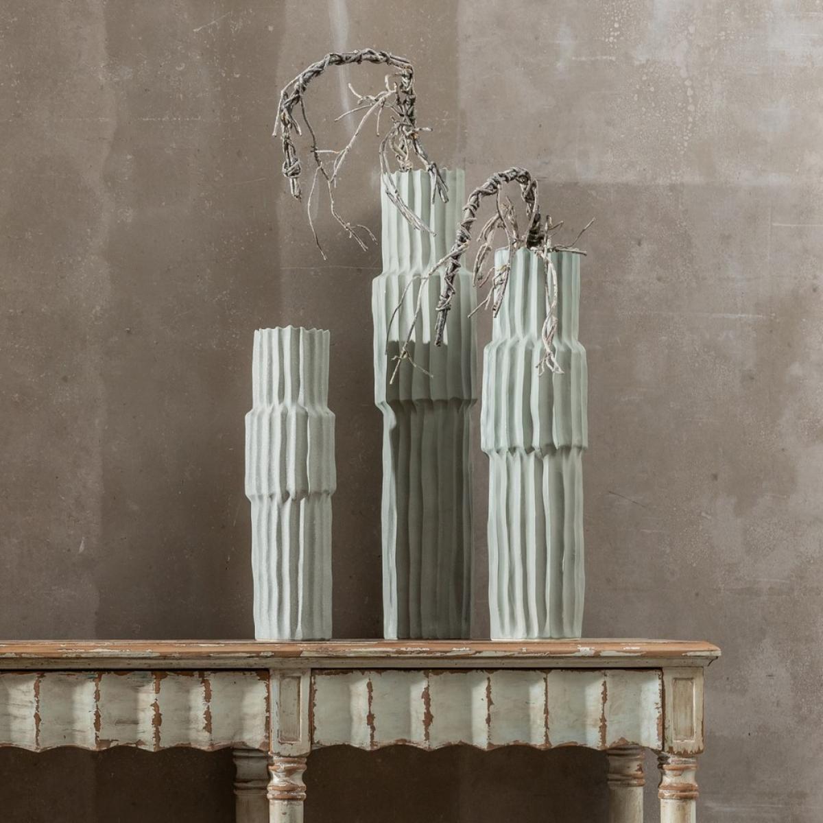 DECORACIÓN - JARRONES Y BANDEJAS 611636 - JARRÓN VERDE CERÁMICA DECORACIÓN 18 X 18 X 60 CM