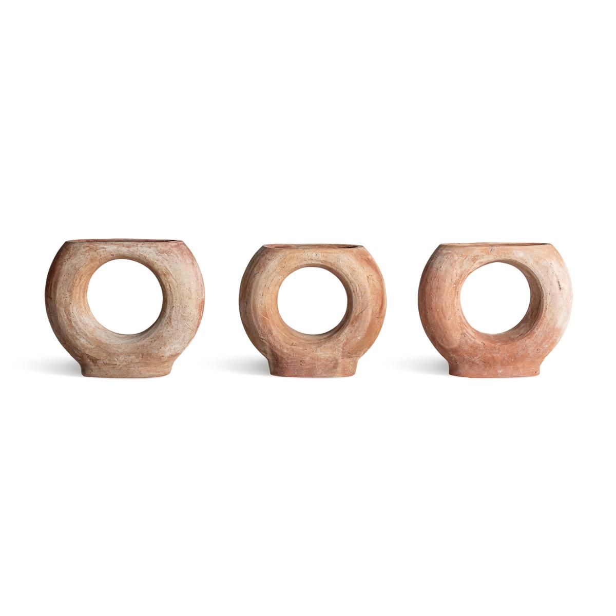 Jarrón Aike de estilo contemporáneo, fabricado en arcilla en color tonos en marrón con acabado envejecido.