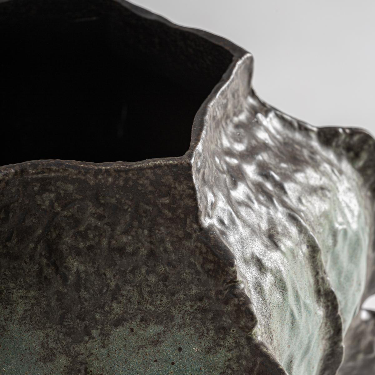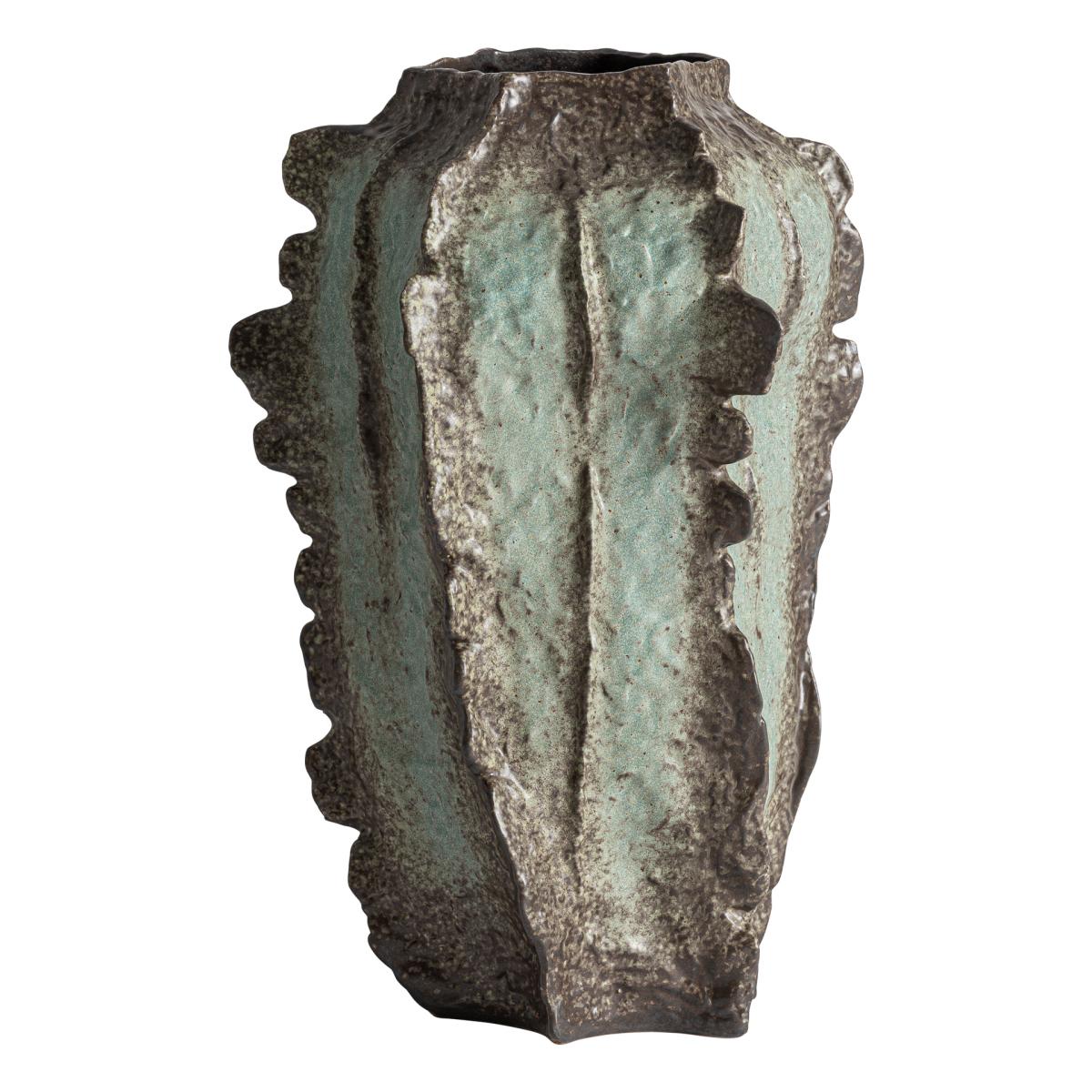 Jarrón Mikota de estilo contemporáneo, fabricado en cerámica en color verde.