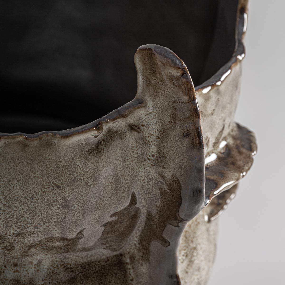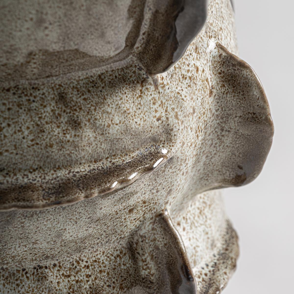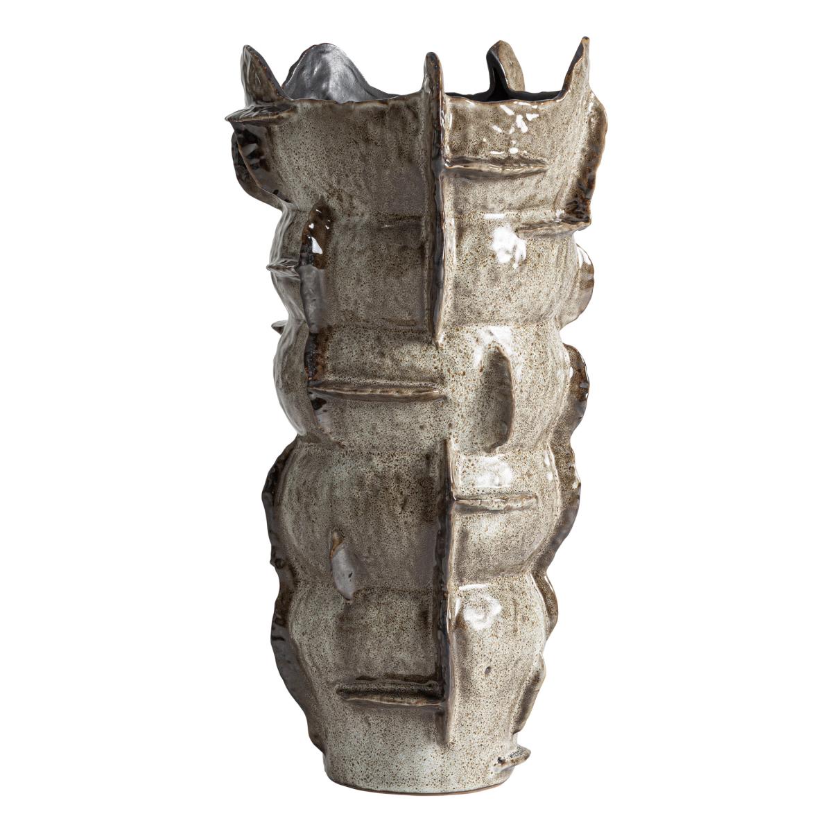 Jarrón Erlea de estilo contemporáneo, fabricado en cerámica en color beige.