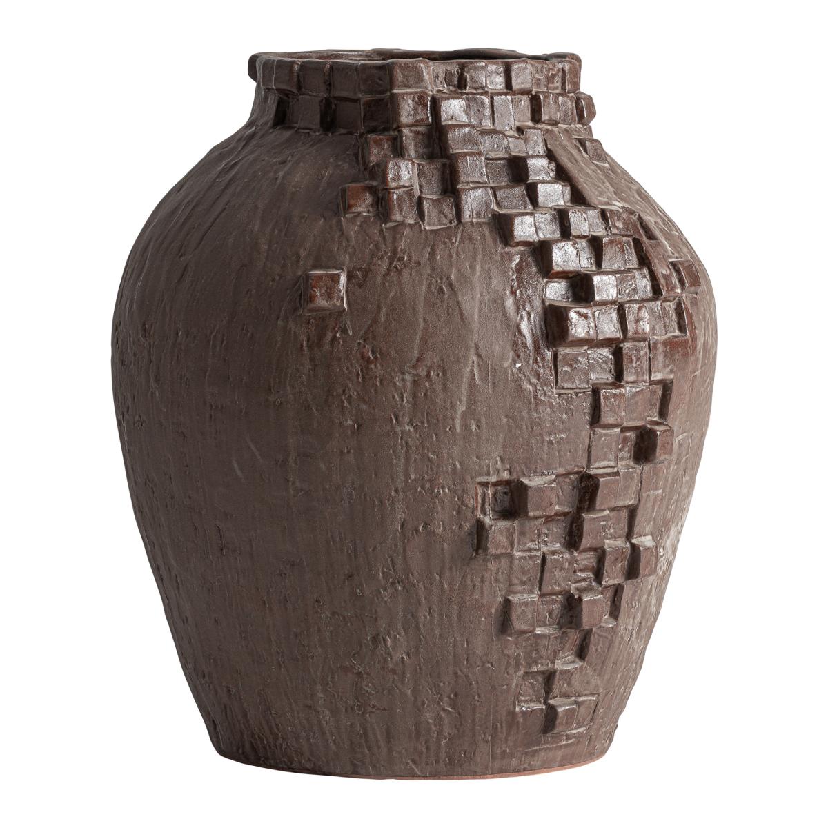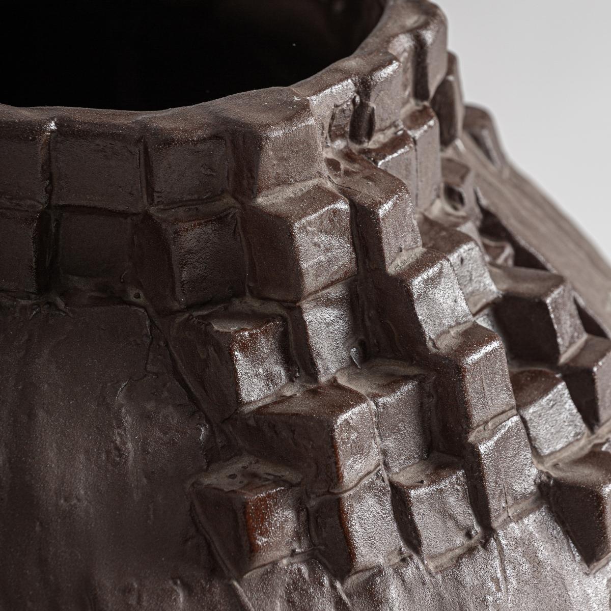Jarrón Henar de estilo contemporáneo, fabricado en cerámica en color marrón.