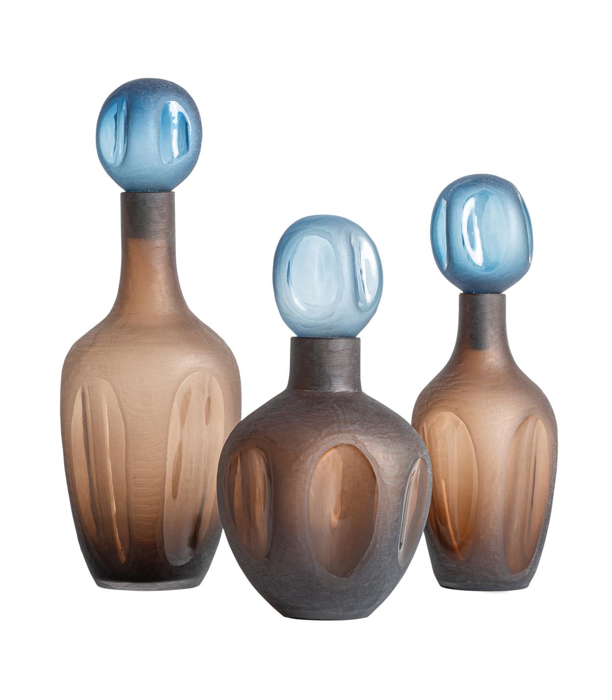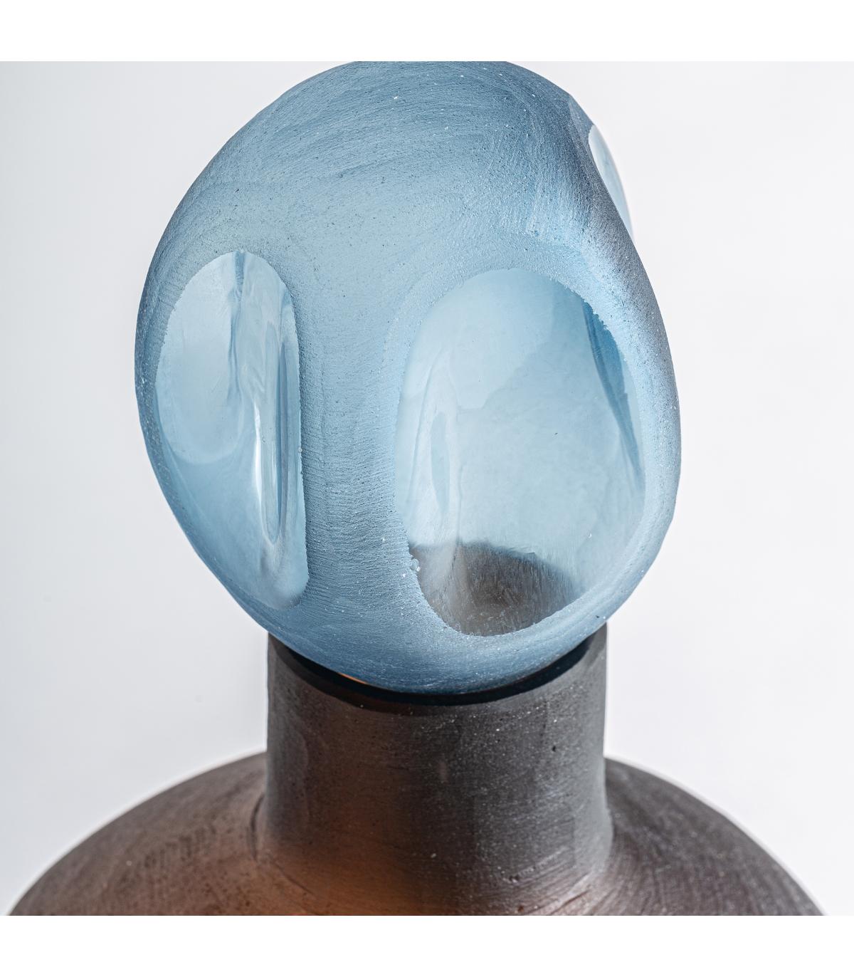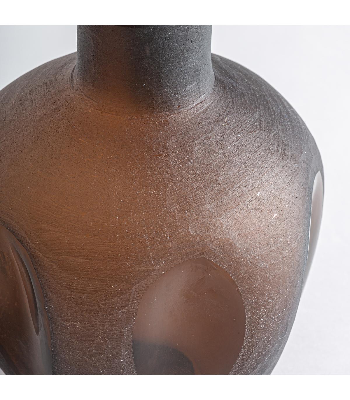 Jarrón Mei de estilo contemporáneo fabricado en vidrio en color marrón en color azul.
