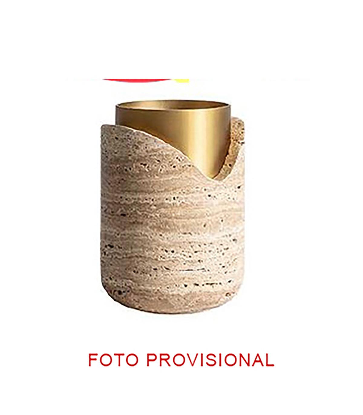 Jarrón de estilo art deco fabricado en mármol en color beige combinado con acero en color oro.
