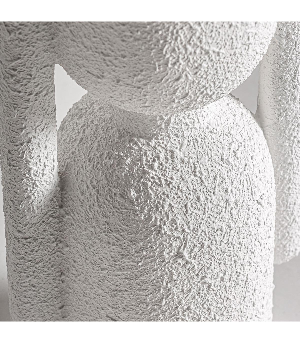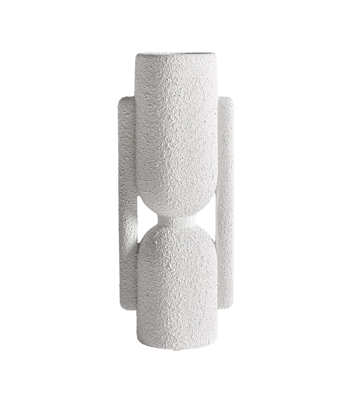 Jarrón gissel de estilo art deco fabricado en cerámica en color blanco con acabado rugoso.