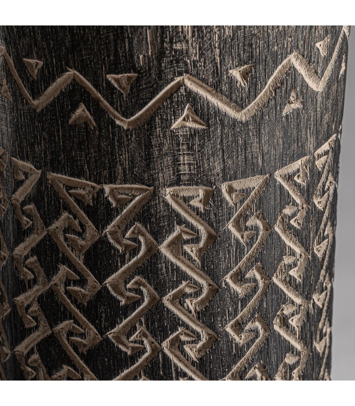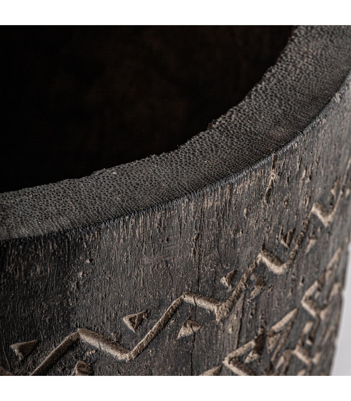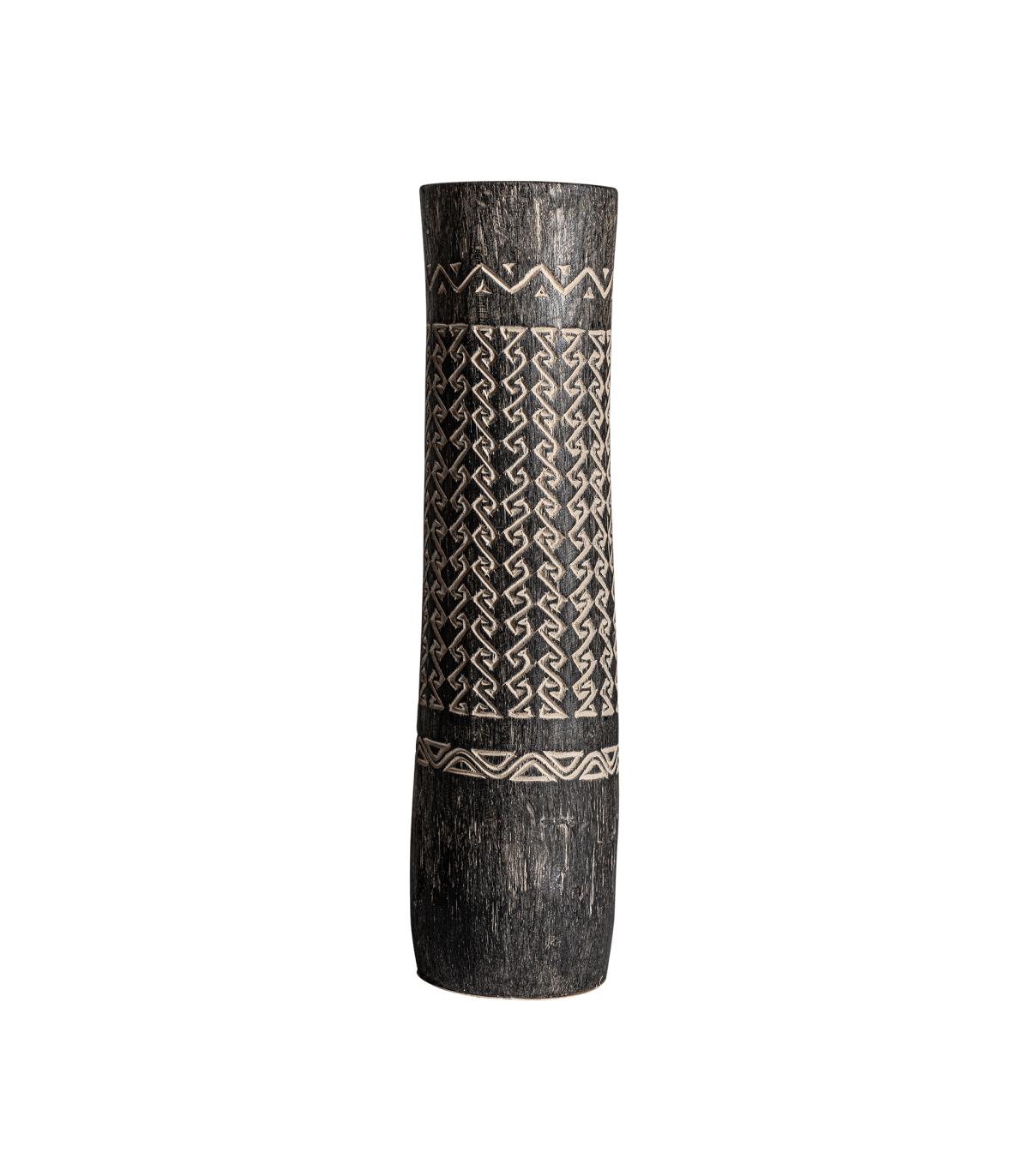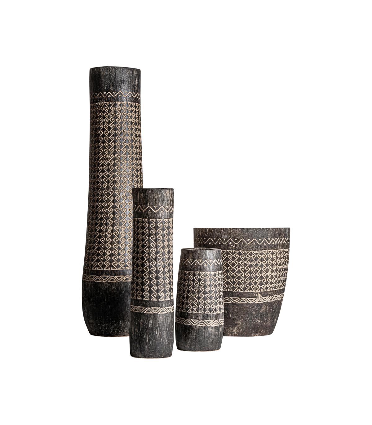 Jarrón nantua de estilo contemporáneo fabricado en madera palma en color tonos en marrón con acabado tallado.