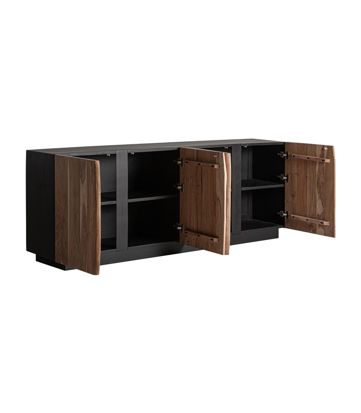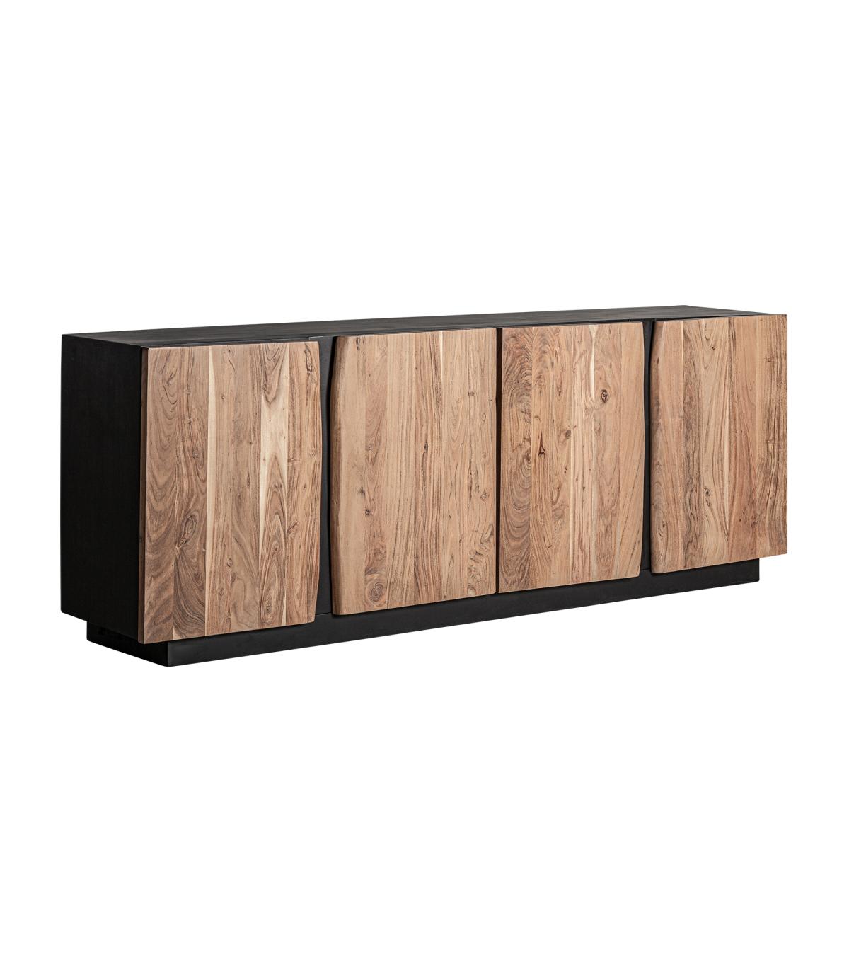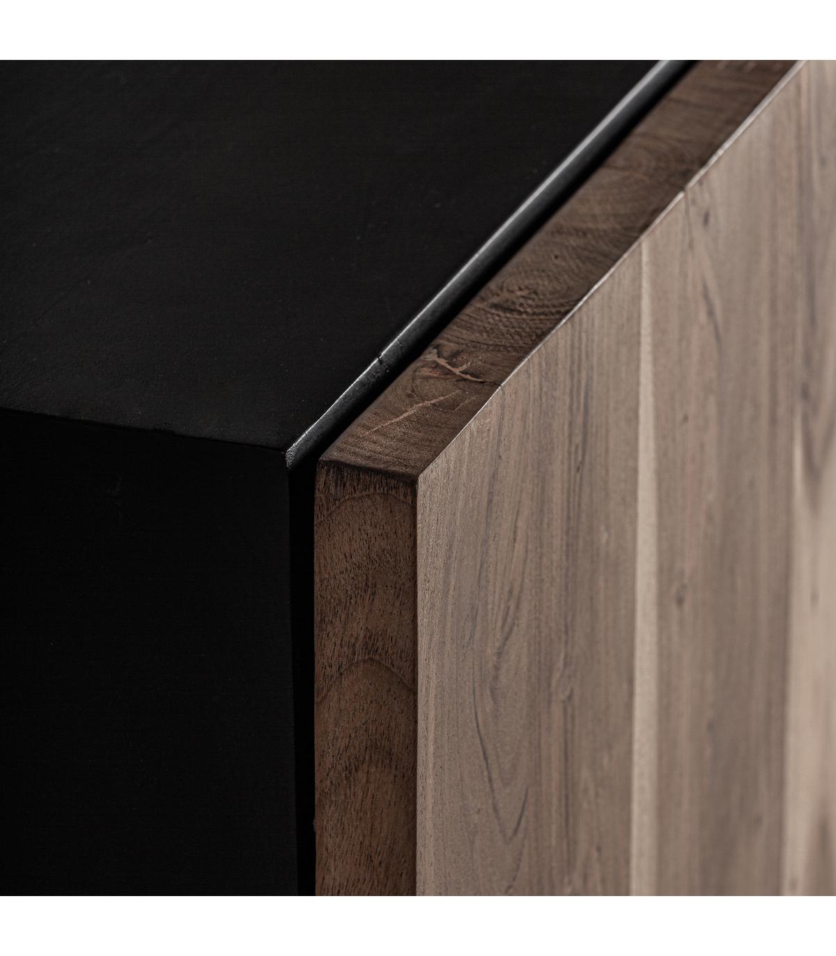 Aparador kerken de estilo art deco fabricado en madera de acacia en color negro combinado con hierro en color marrón.