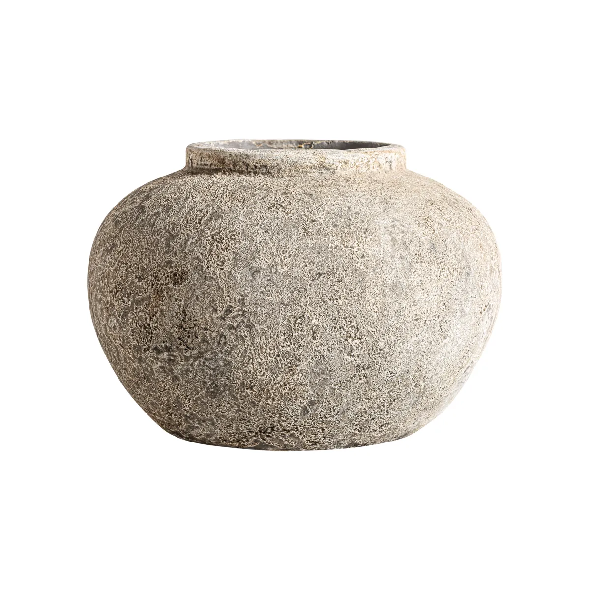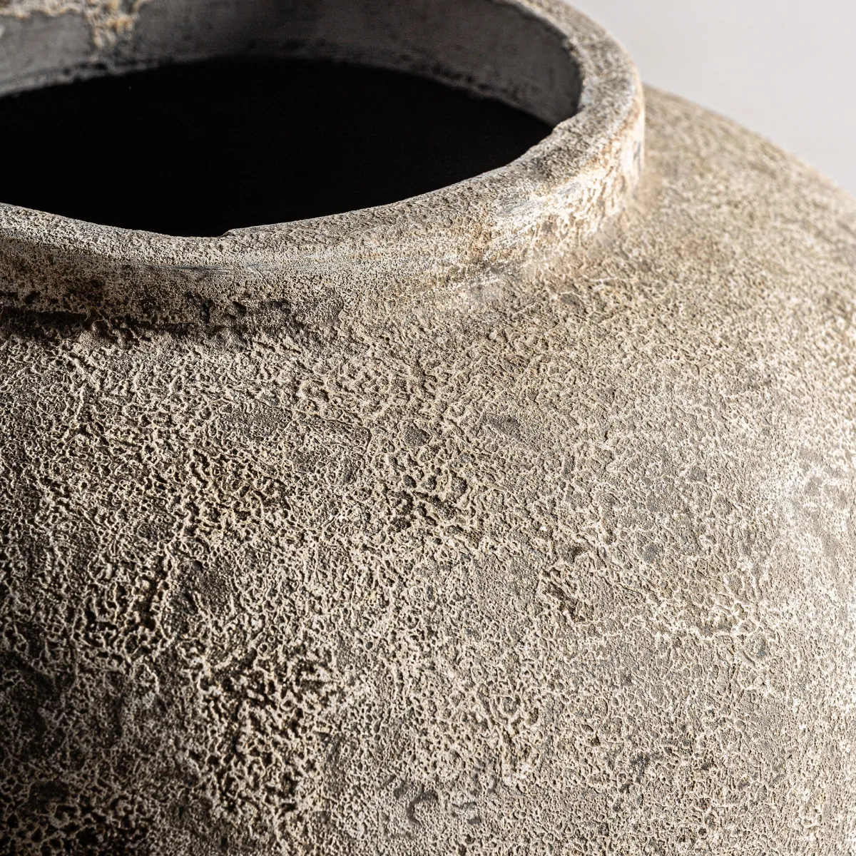 Jarrón feshelle de estilo vintage fabricado en cerámica en color blanco roto con acabado envejecido.
