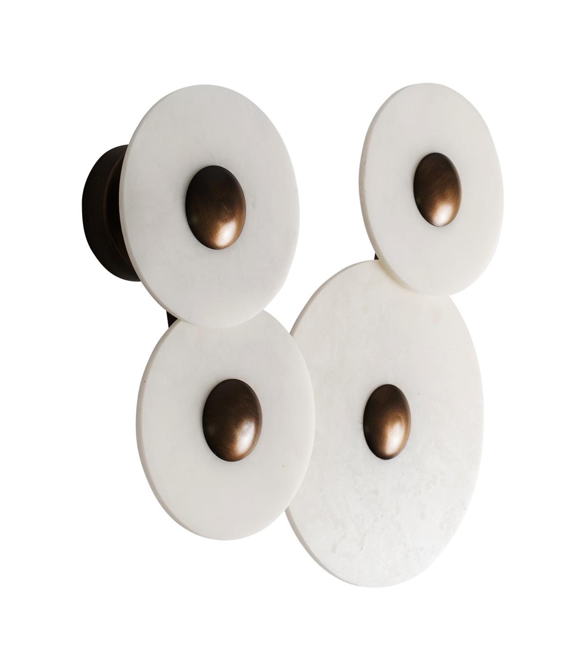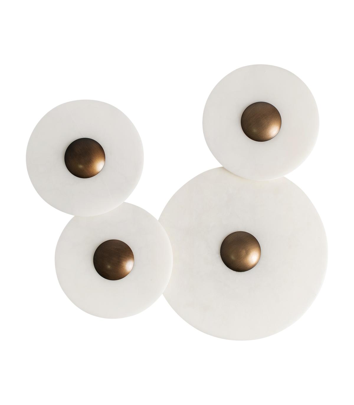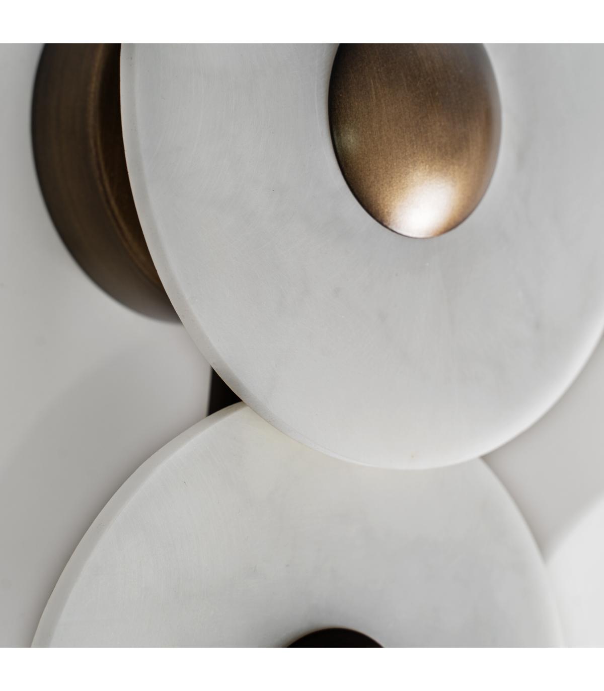 Aplique Elies de estilo art deco fabricado en resina en color blanco combinado con acero en color oro y fibrocemento en color blanco. Producto desmontable.