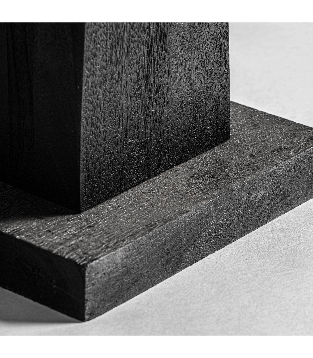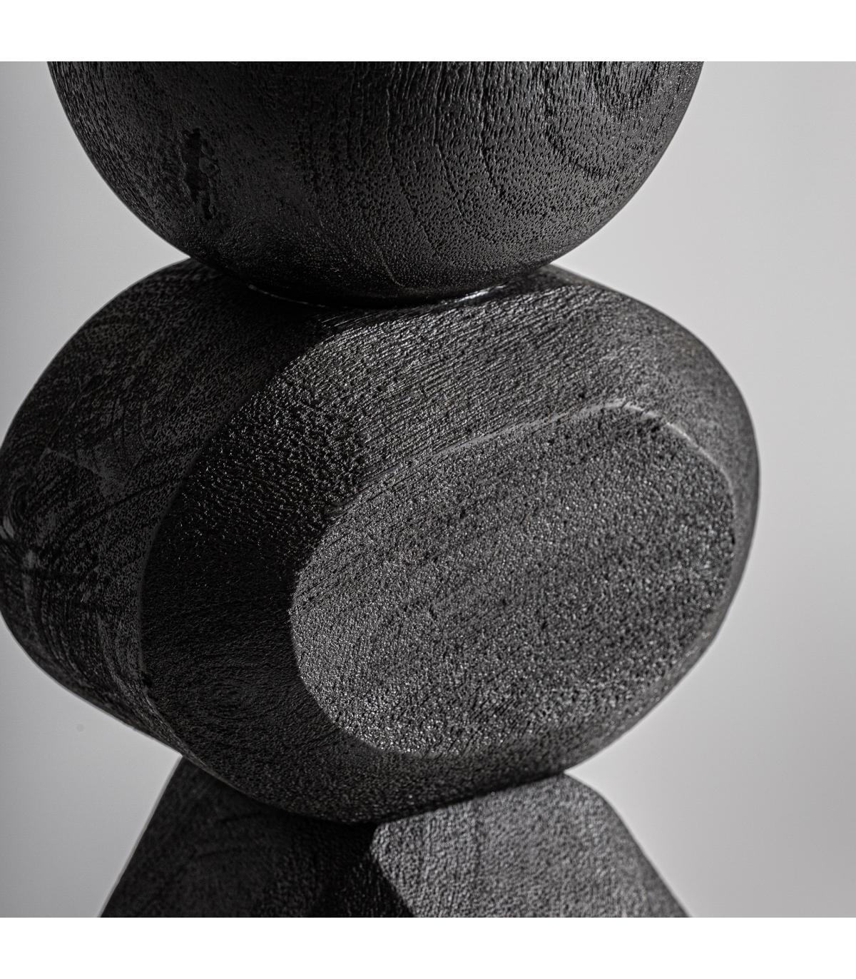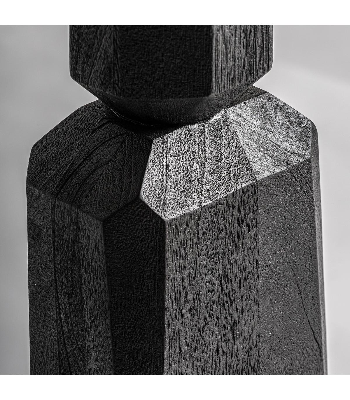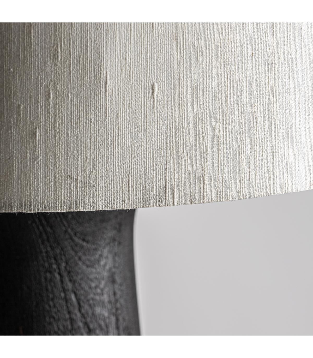 Lámpara de pie cogne de estilo contemporáneo fabricado en madera de mango en color negro combinado con yute en color crema.