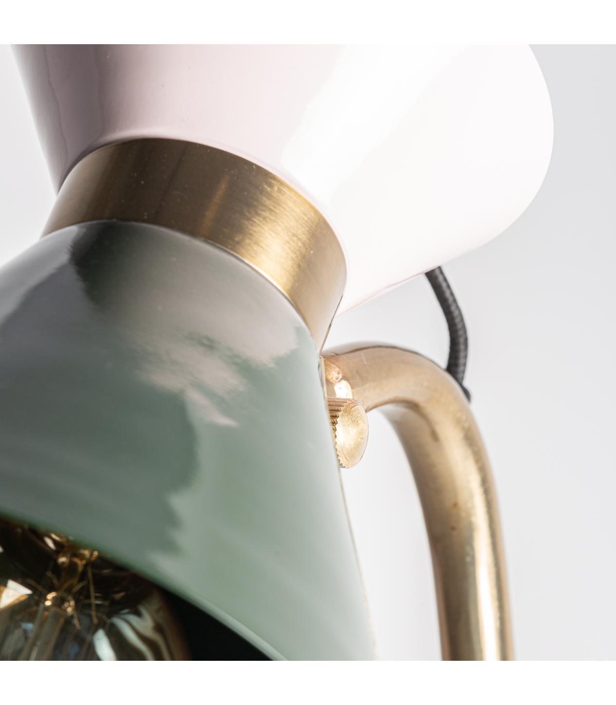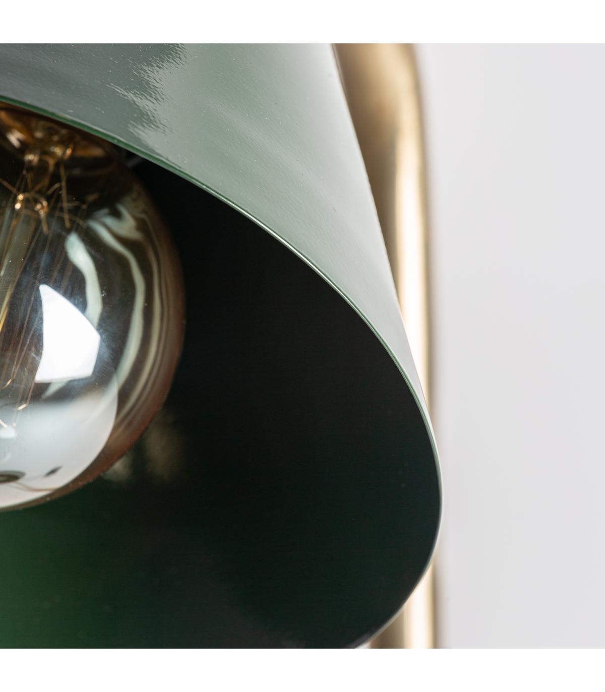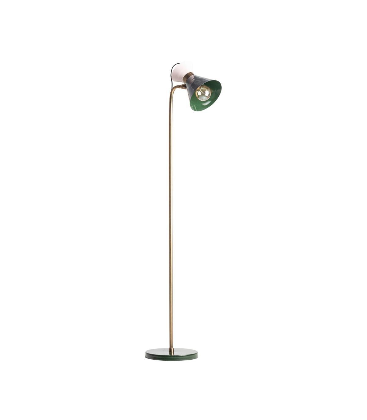 Lámpara de pie de estilo art deco fabricado en hierro en color verde combinado con latón en color oro.