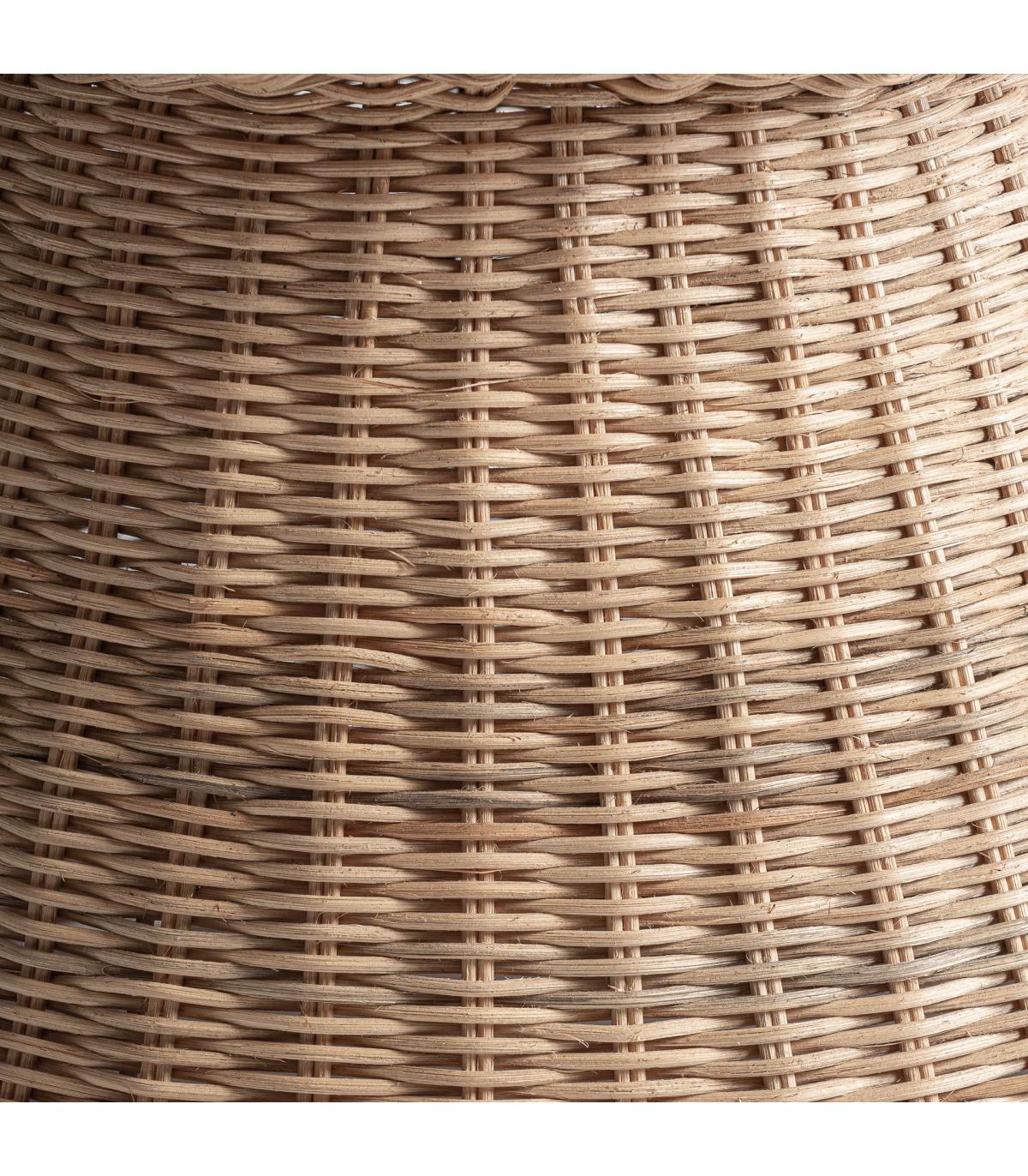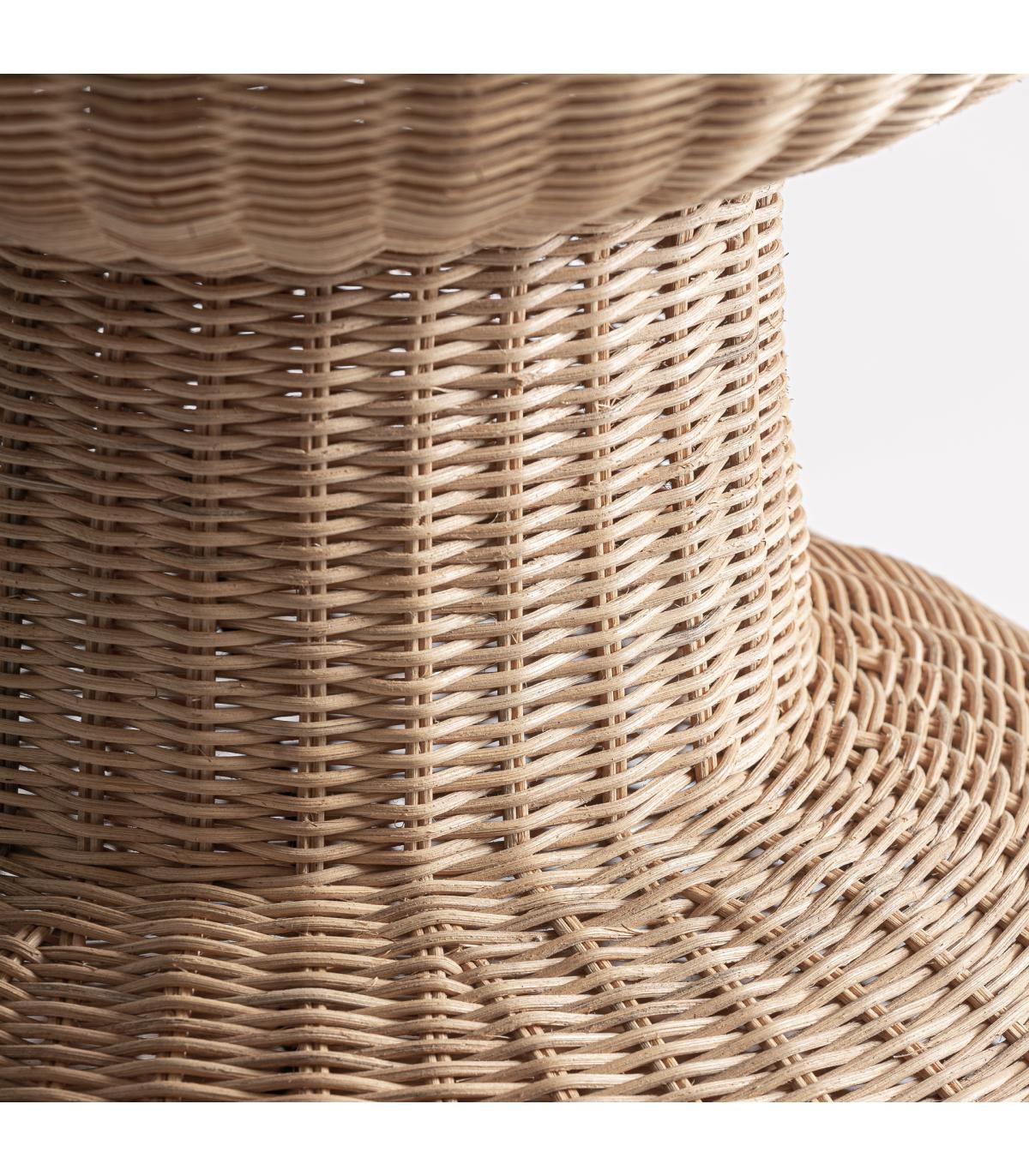 Lámpara de pie de estilo boho fabricado en ratán en color marrón.