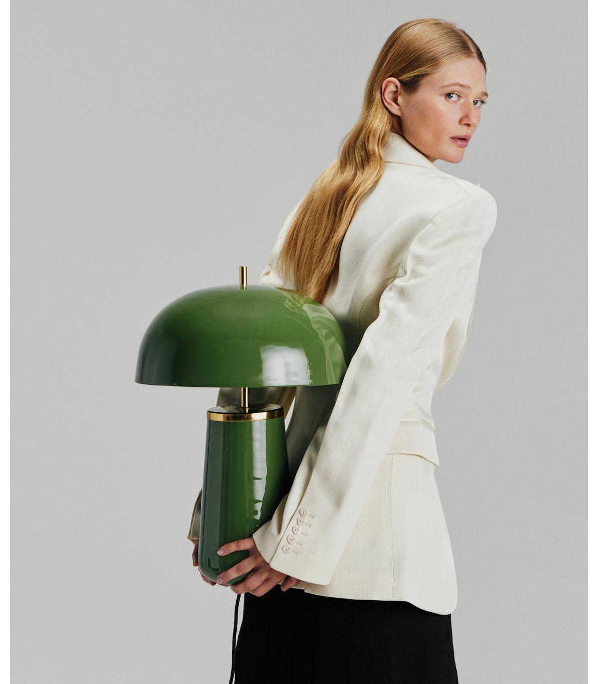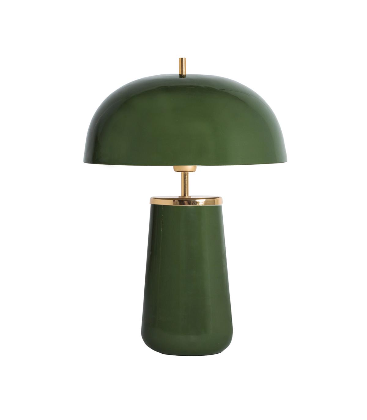 Lámpara de sobremesa Arosa de estilo contemporáneo, fabricado en hierro en color verde con acabado brillo en color oro.