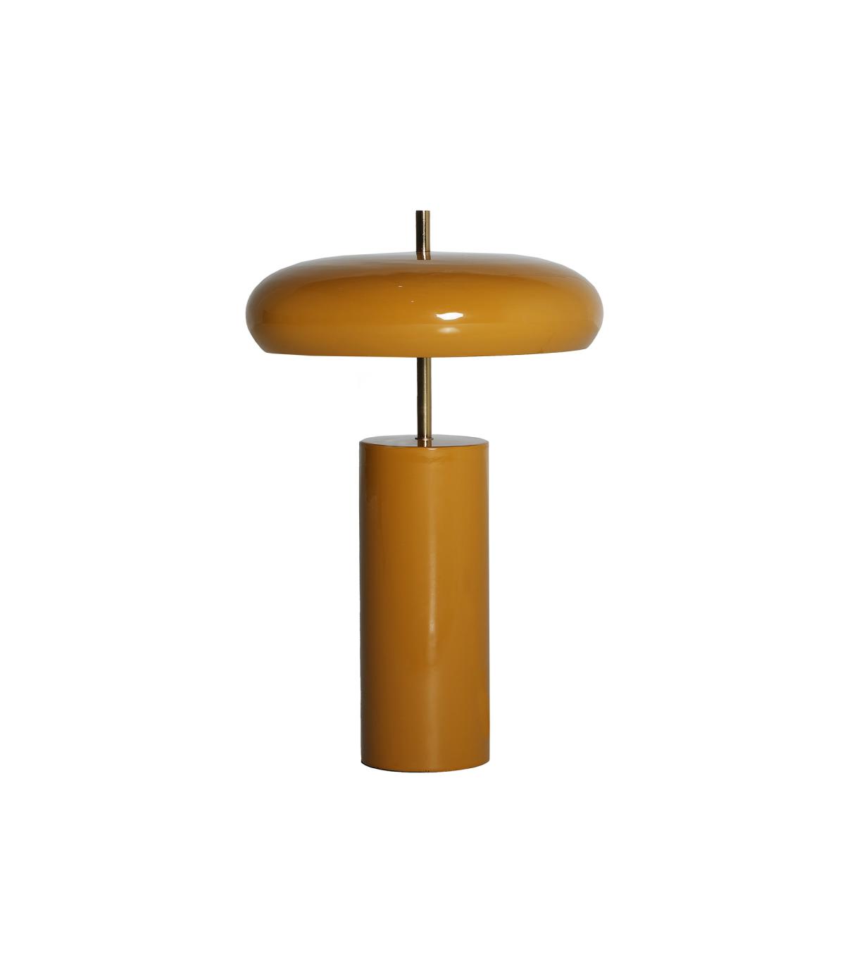 Lámpara de sobremesa Zalk de estilo contemporáneo, fabricado en hierro en color ocre con acabado brillo en color oro. Producto desmontable.
