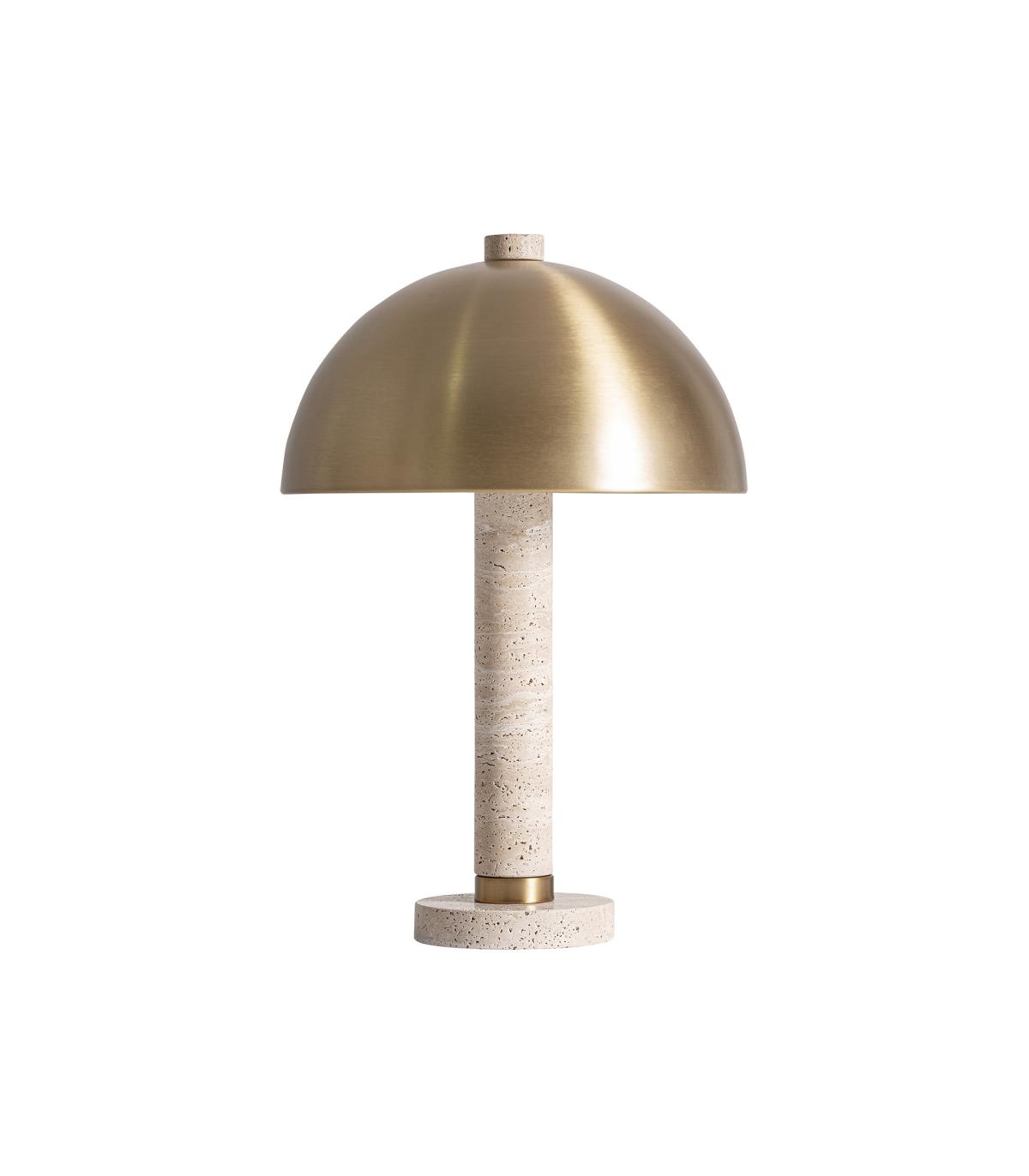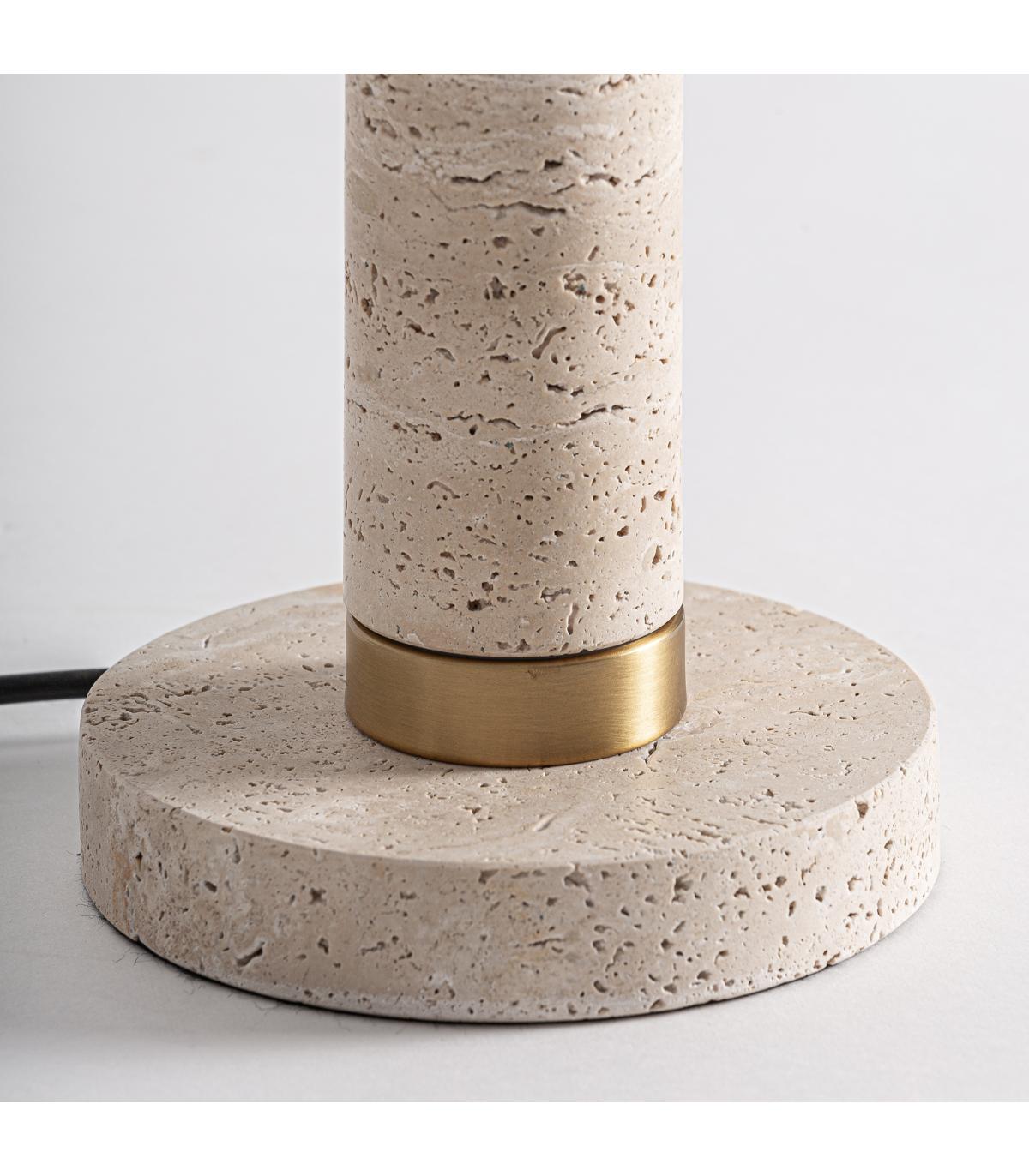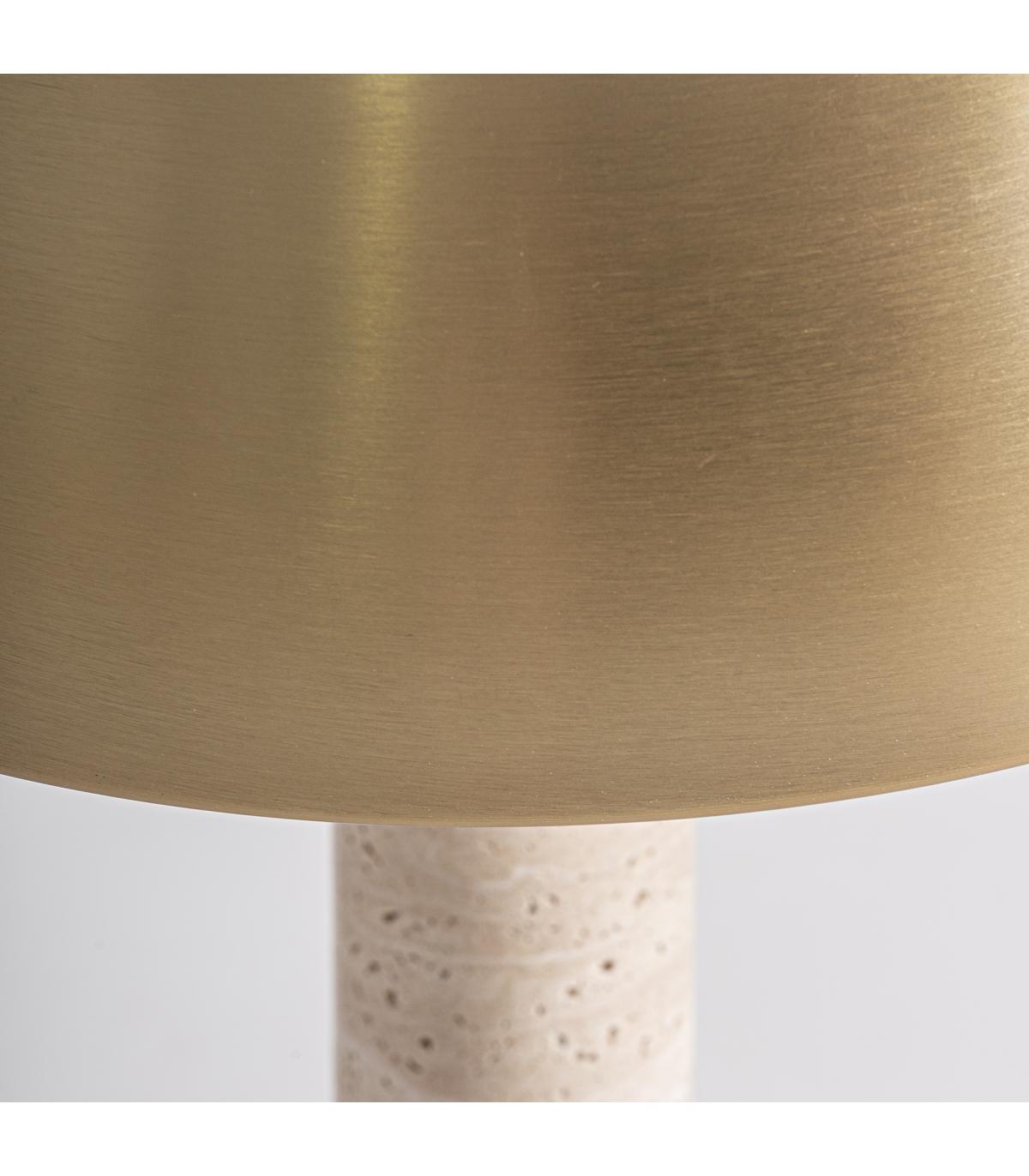 Lámpara de sobremesa Clajhe de estilo art deco fabricado en travertino en color marfil combinado con hierro en color oro. Producto desmontable.