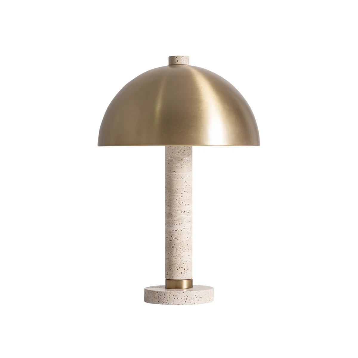 Lámpara de sobremesa Clajhe de estilo art deco fabricado en travertino en color marfil combinado con hierro en color oro. Producto desmontable.