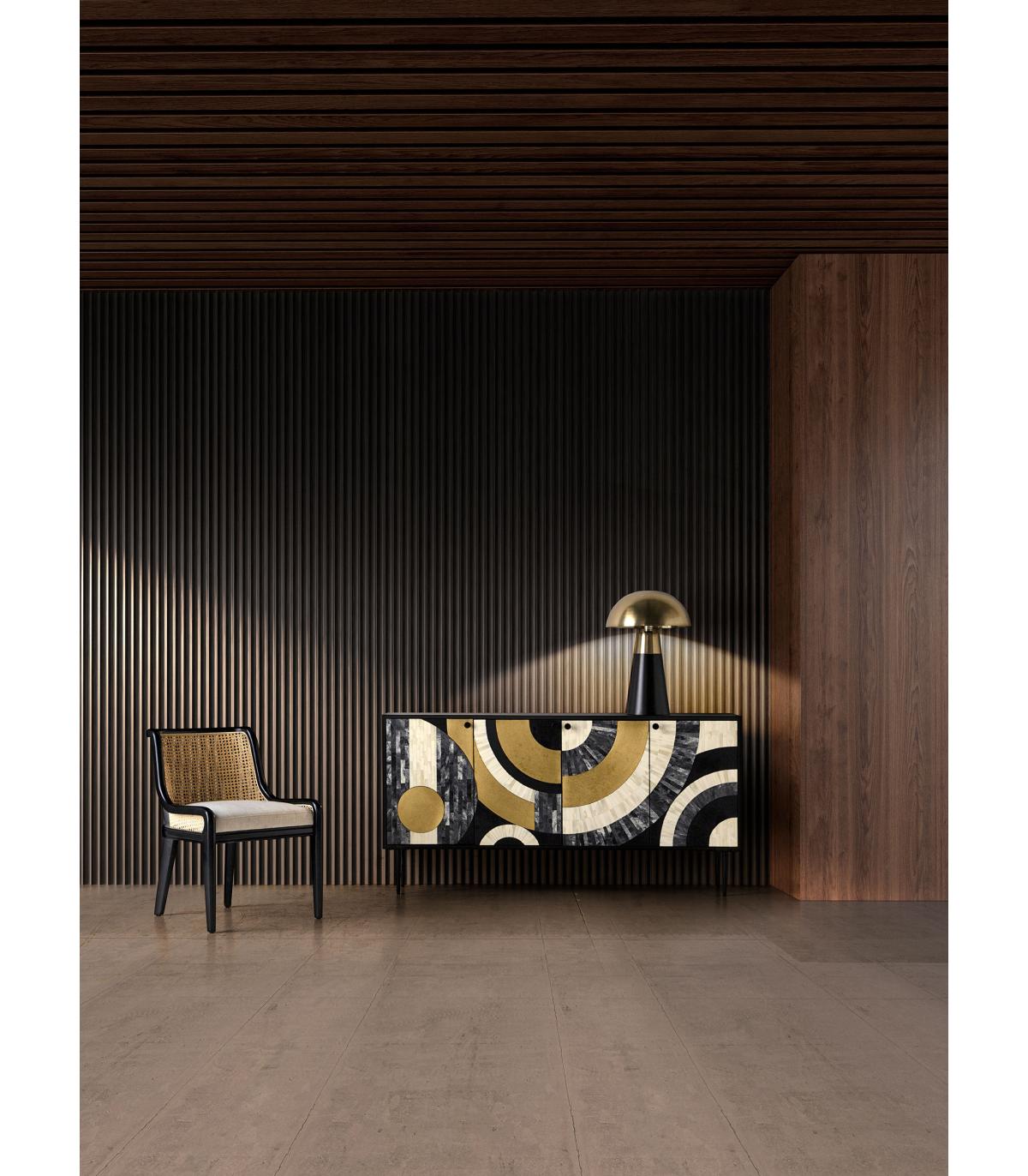 Lámpara de sobremesa de estilo art deco fabricado en latón en color oro en color negro. Producto desmontable.