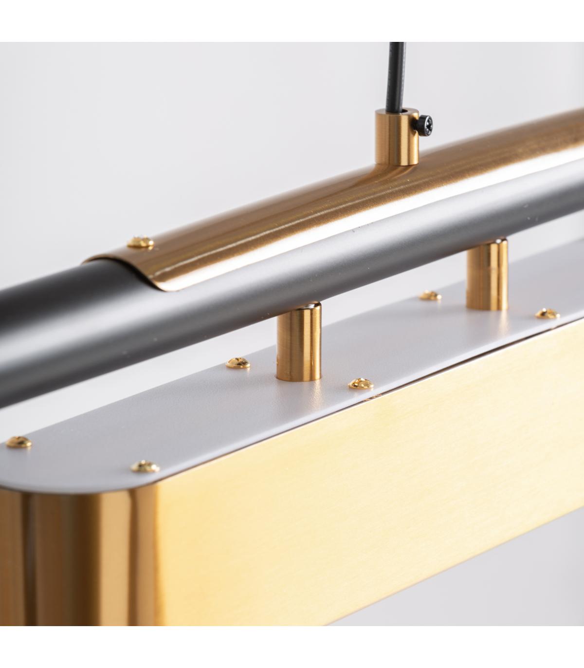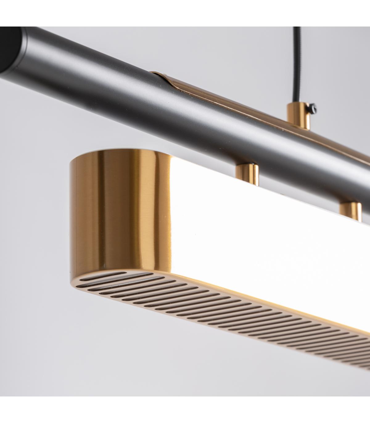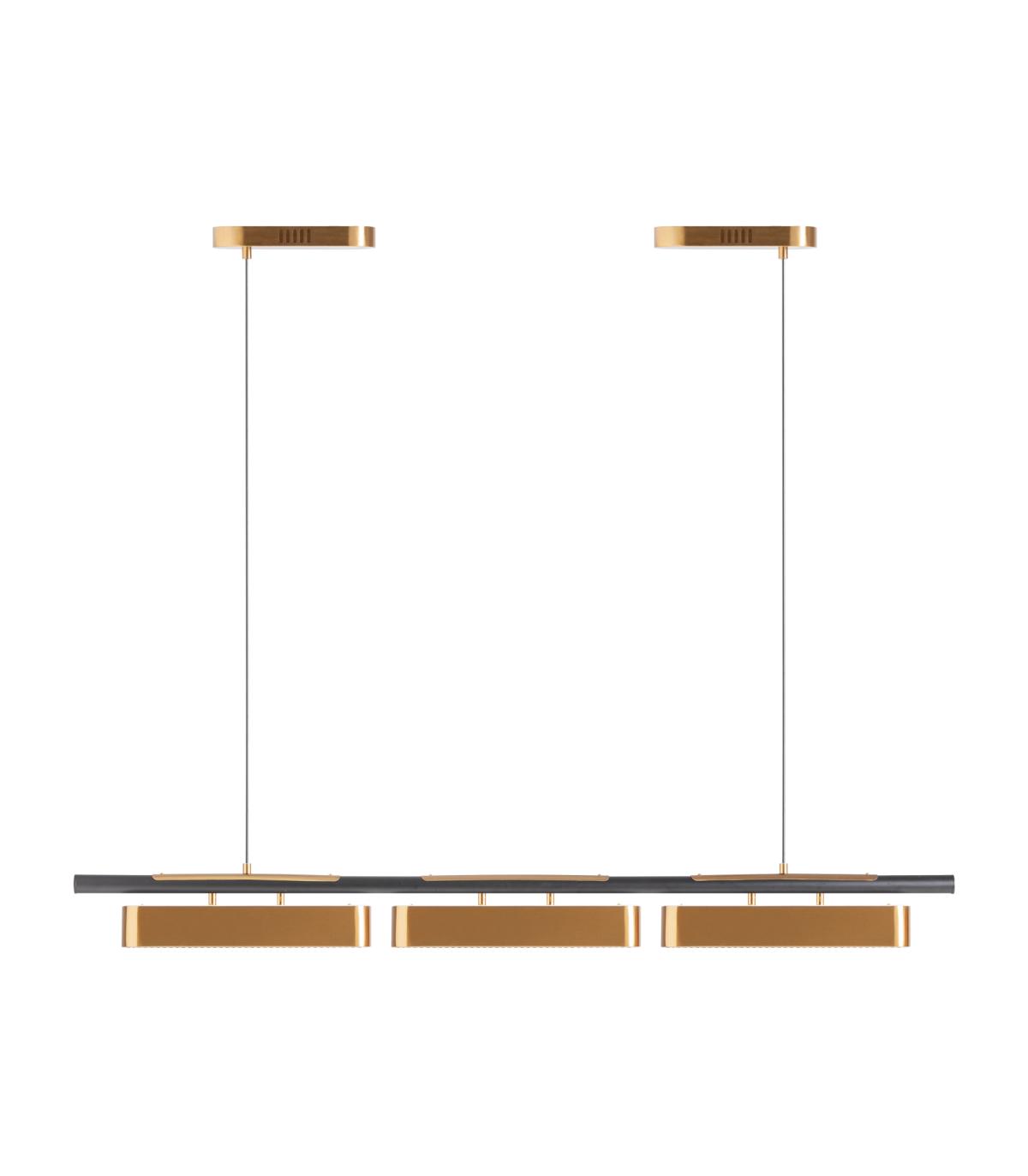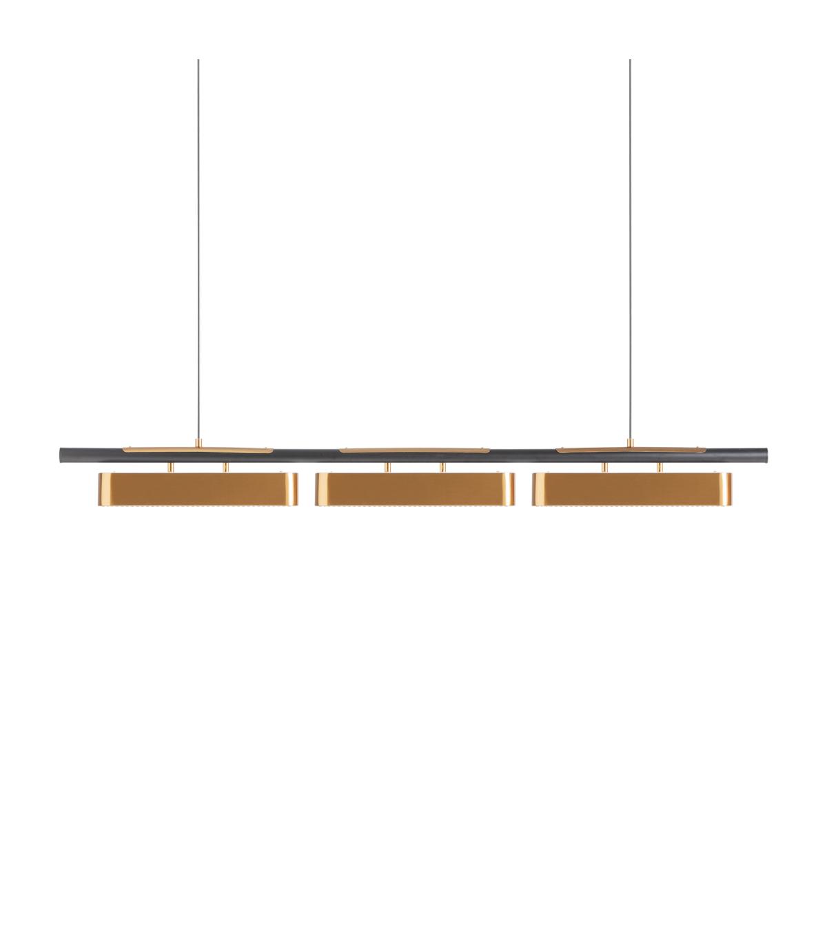 Lámpara de colgar fabricado en acero en color cobre combinado con hierro en color negro.