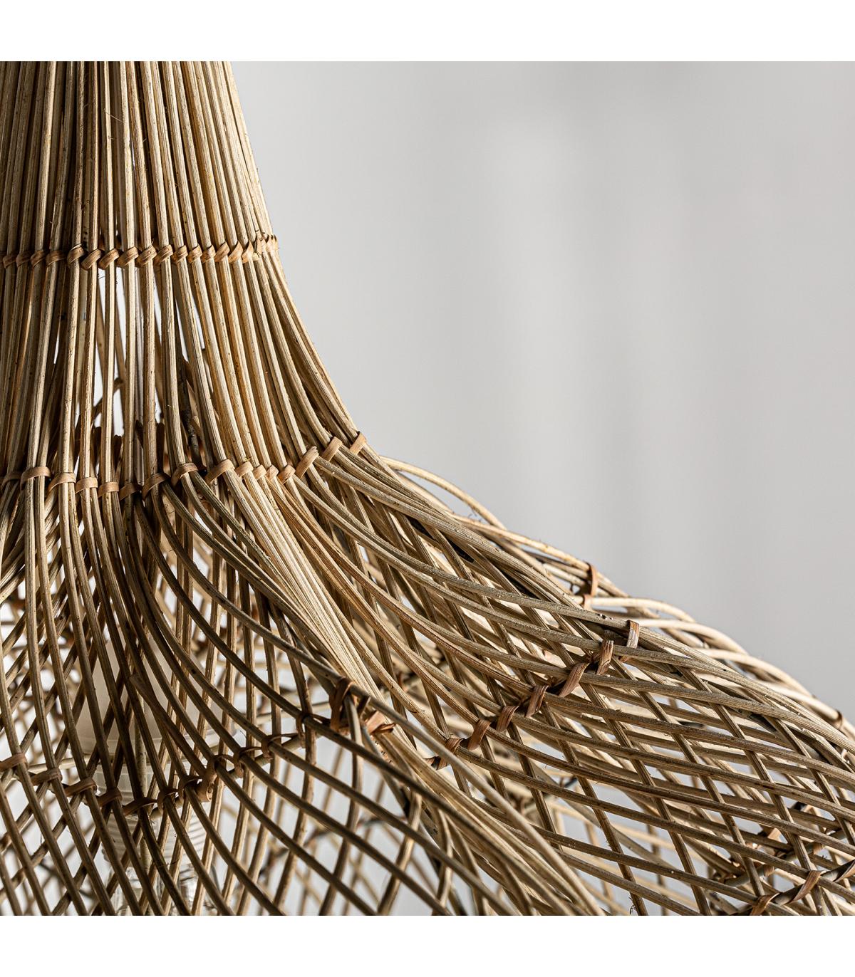Lámpara de colgar tisno de estilo contemporáneo fabricado en ratán en color marrón combinado con hierro.