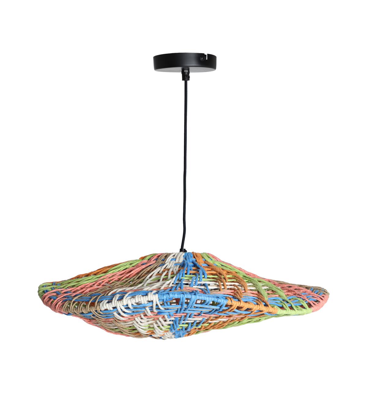 Lámpara de colgar Kalei de estilo boho, fabricado en rafia en color multicolor, combinado con hierro en color negro.