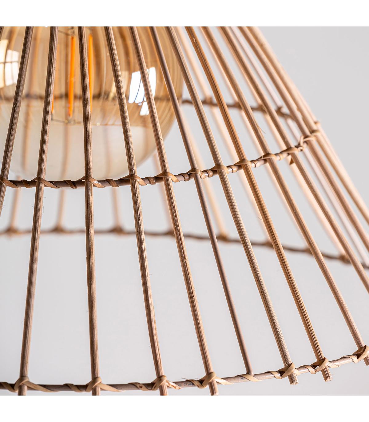 Lámpara de colgar redonda arteaga de estilo contemporáneo, fabricado en ratán en color marrón, combinado con hierro en color negro.