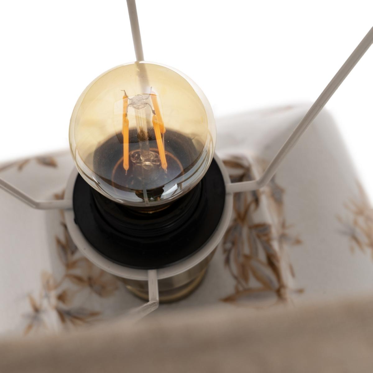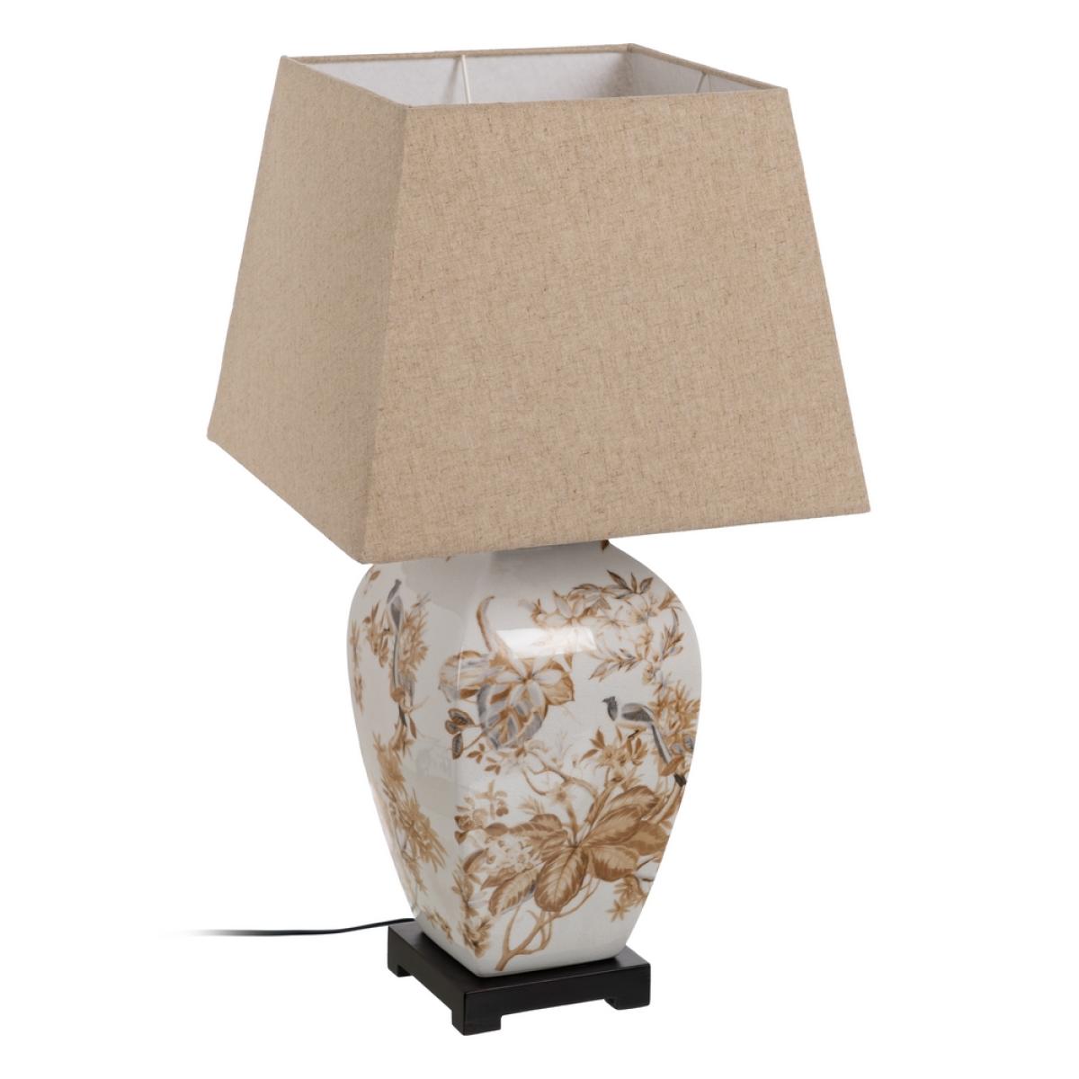 LÁMPARA MESA BLANCO-MARRÓN PORCELANA 22 X 22 X 45 CM Material: PORCELANA Y POLIÉSTER. Medidas de la tulipa:36*40*25cm. Voltios: 220-240V. Casquillo: E27. Bombilla: 1*60W (no incluida). Cable color negro. Longitud del cable:2.50m