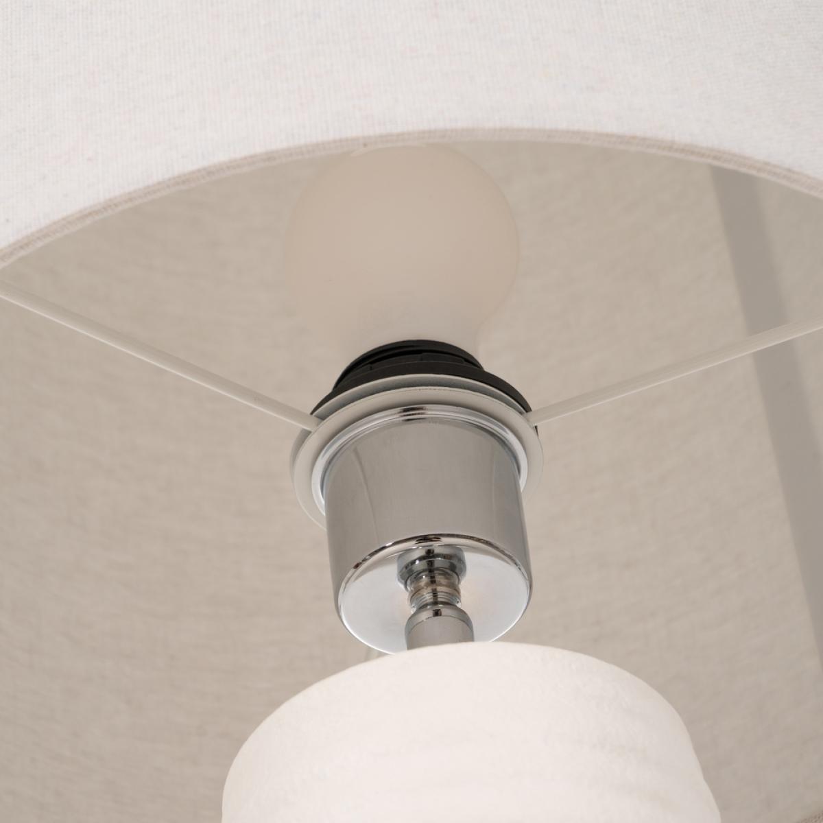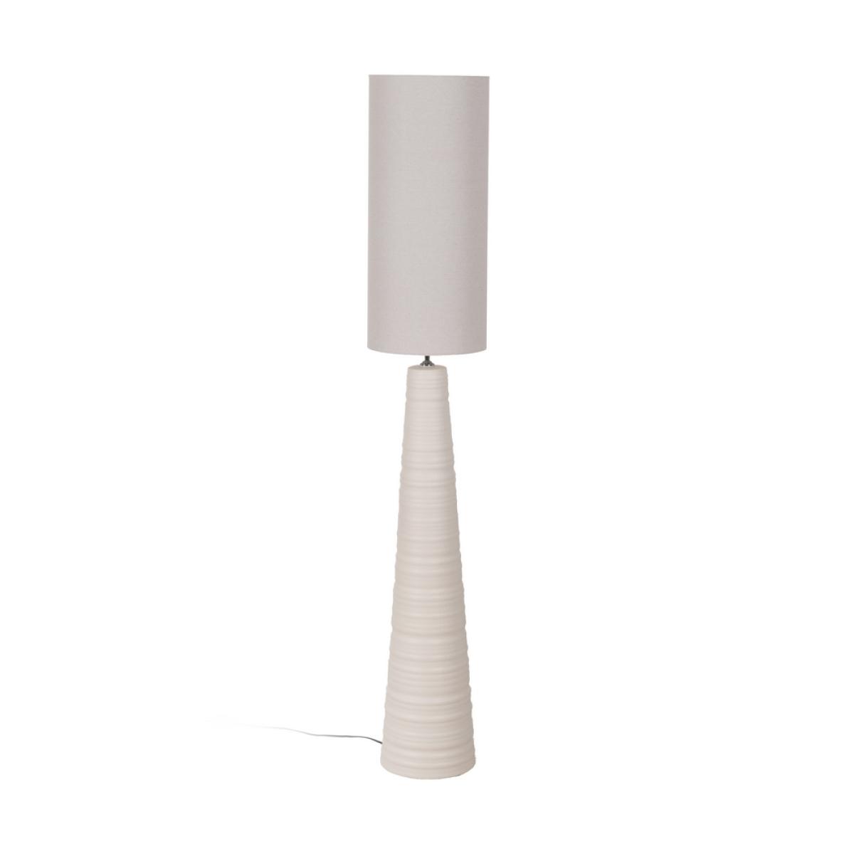 LÁMPARA SUELO BLANCO CERÁMICA 30 X 30 X 177 CM Base de cerámica, medidas 25x25x107cm. Pantalla de tejido (lino), medidas 30x30x68cm. Voltaje: 220V. Casquillo: E27. Bombillas: 1*60W máx (no incluida). Longitud cable: 120cm.