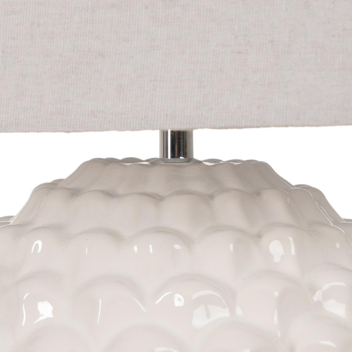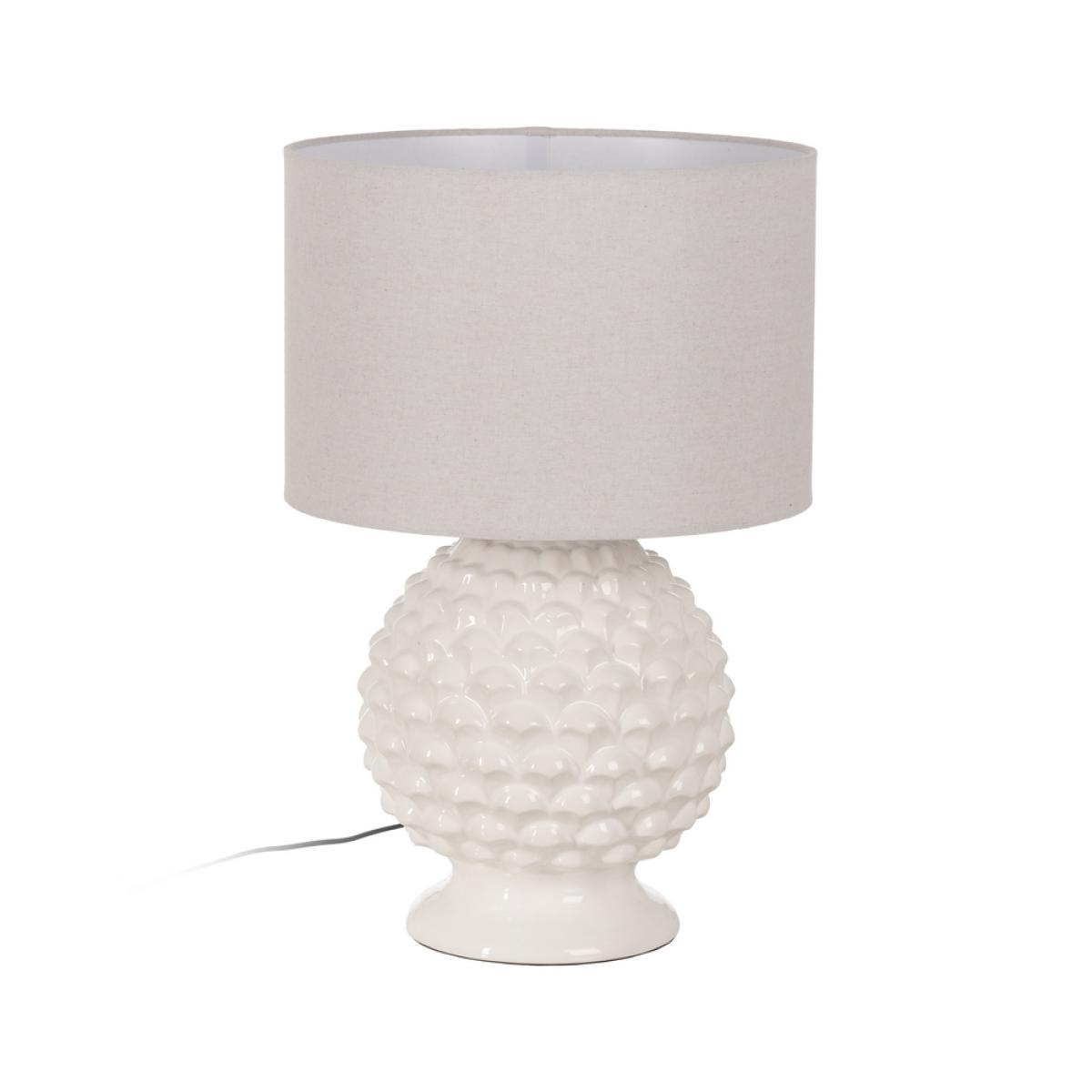 LÁMPARA MESA BLANCO CERÁMICA ILUMINACIÓN 38 X 38 X 58,50 CM Base de cerámica, medidas 27x27x29cm. Pantalla de tejido (lino), medidas 38x38x25cm. Voltaje: 220V. Casquillo: E27. Bombillas: 1*60W máx (no incluida). Longitud cable: 120cm.