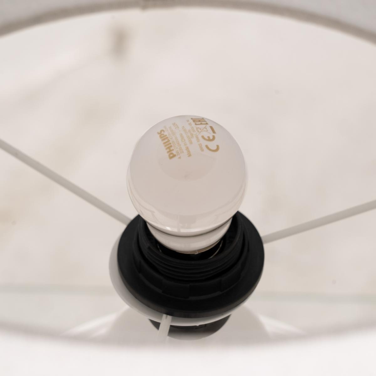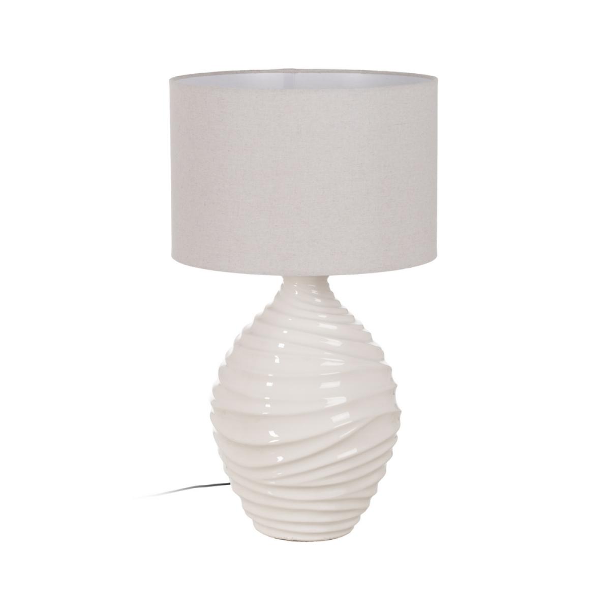 LÁMPARA MESA BLANCO CERÁMICA ILUMINACIÓN 38 X 38 X 67 CM Base de cerámica, medidas 27,5x27,5x40cm. Pantalla de tejido (lino), medidas 38x38x25cm. Voltaje: 220V. Casquillo: E27. Bombillas: 1*60W máx (no incluida). Longitud cable: 120cm.