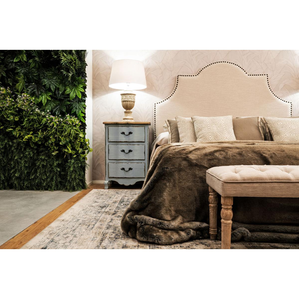 Lámpara de sobremesa de estilo provenzal, fabricado en madera de mango en color marrón, combinado con algodón.