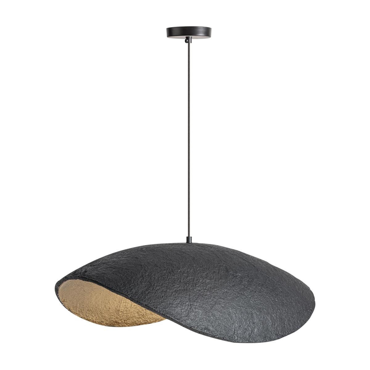 Lámpara de colgar fabricado en hierro en color negro combinado con papel maché en color bronce.