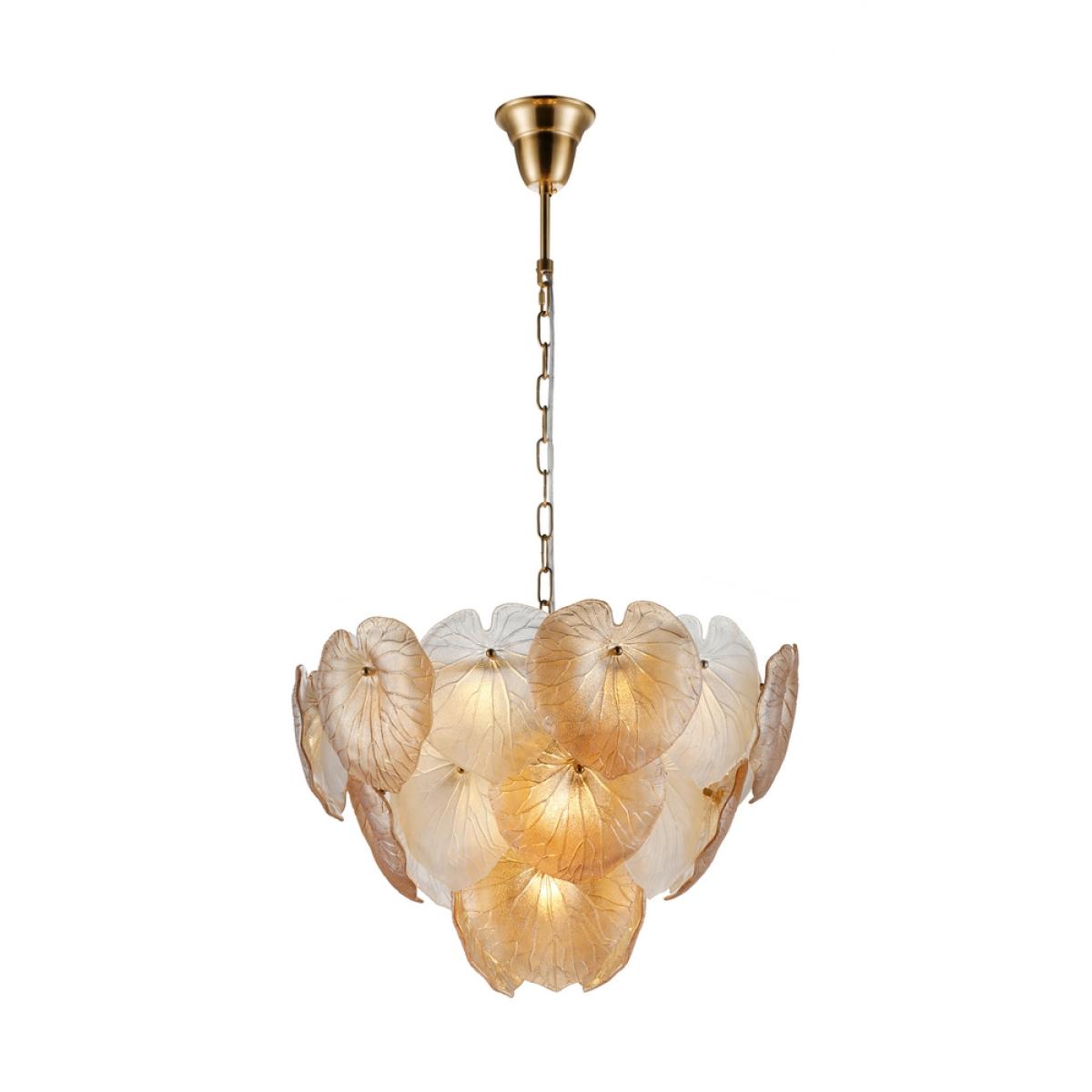 LÁMPARA TECHO CHAMPÁN CRISTAL 55 X 55 X 38 CM Material: cristal, hierro. Voltaje: 220-240V. Casquillos: E14. Bombillas: 10*25W máx (no incluidas). Longitud cadena: 100cm. Se recomienda colgar la lámpara en un techo firme y robusto.