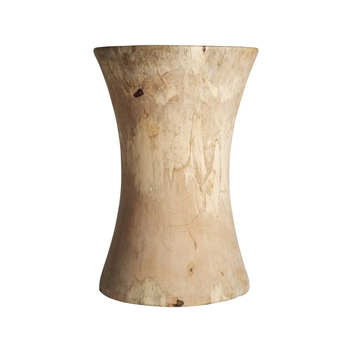 Taburete guelma, en color marrón natural, de estilo étnico. Fabricado en madera suar.
