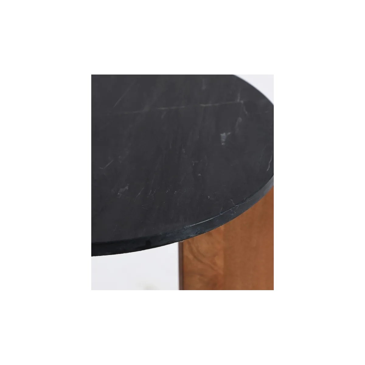Mesa auxiliar, fabricado en mármol en color negro, combinado con madera de mango en color marrón.