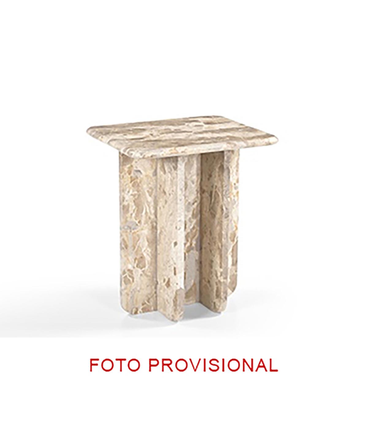 Mesa auxiliar fabricado en mármol en color beige.