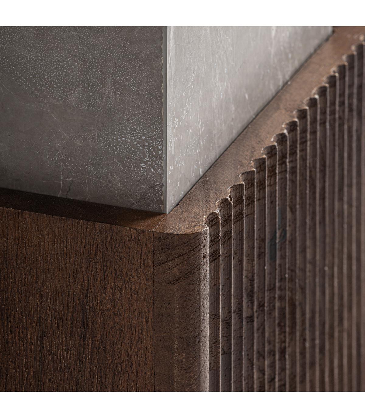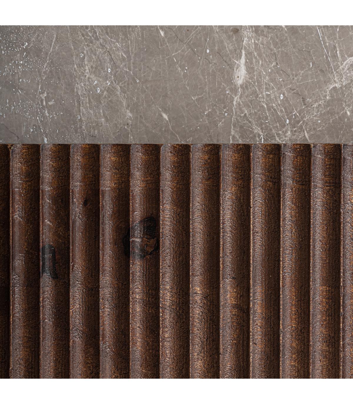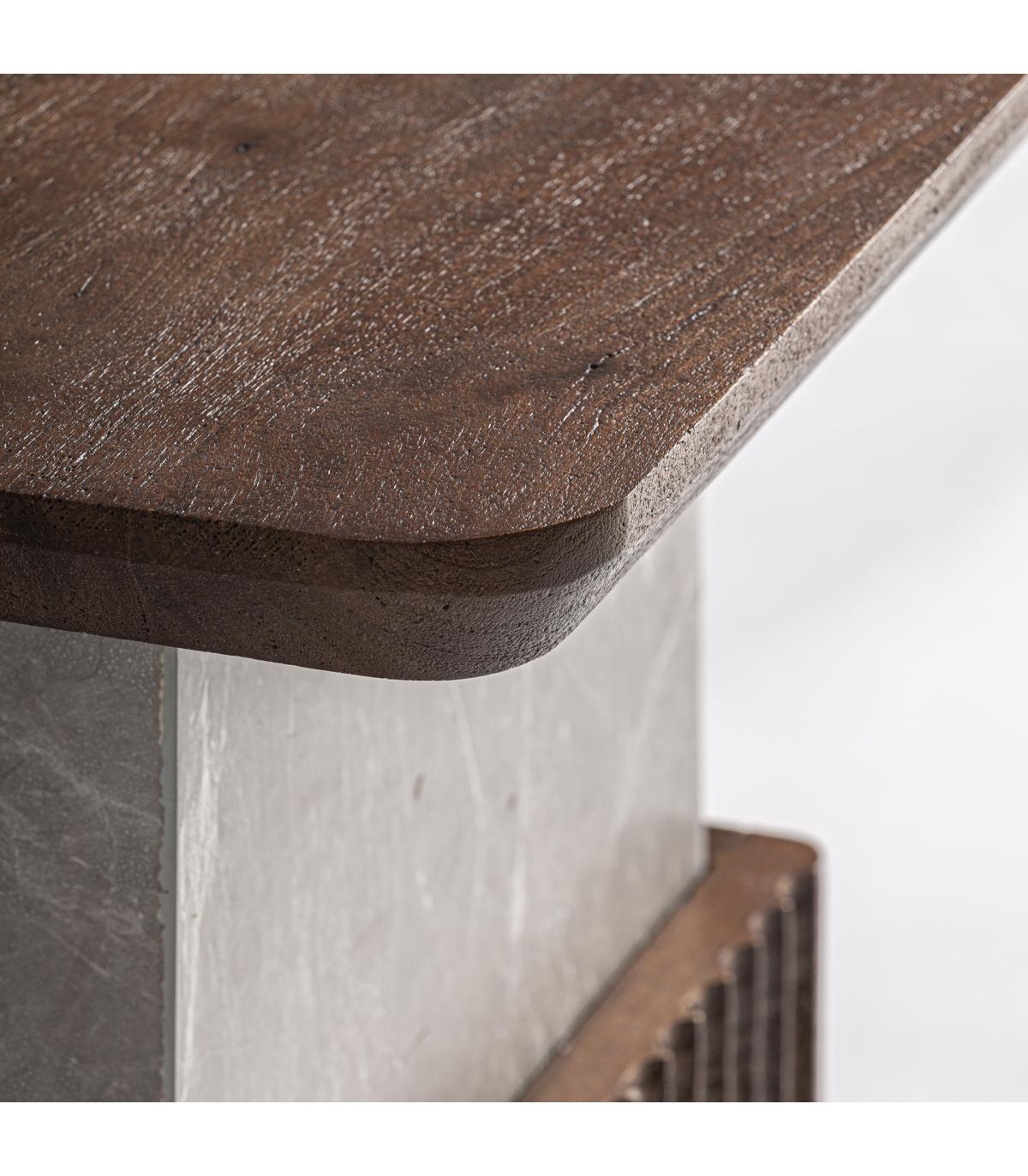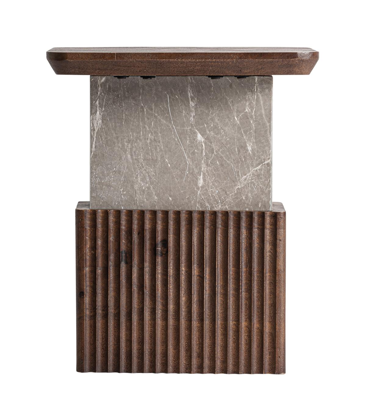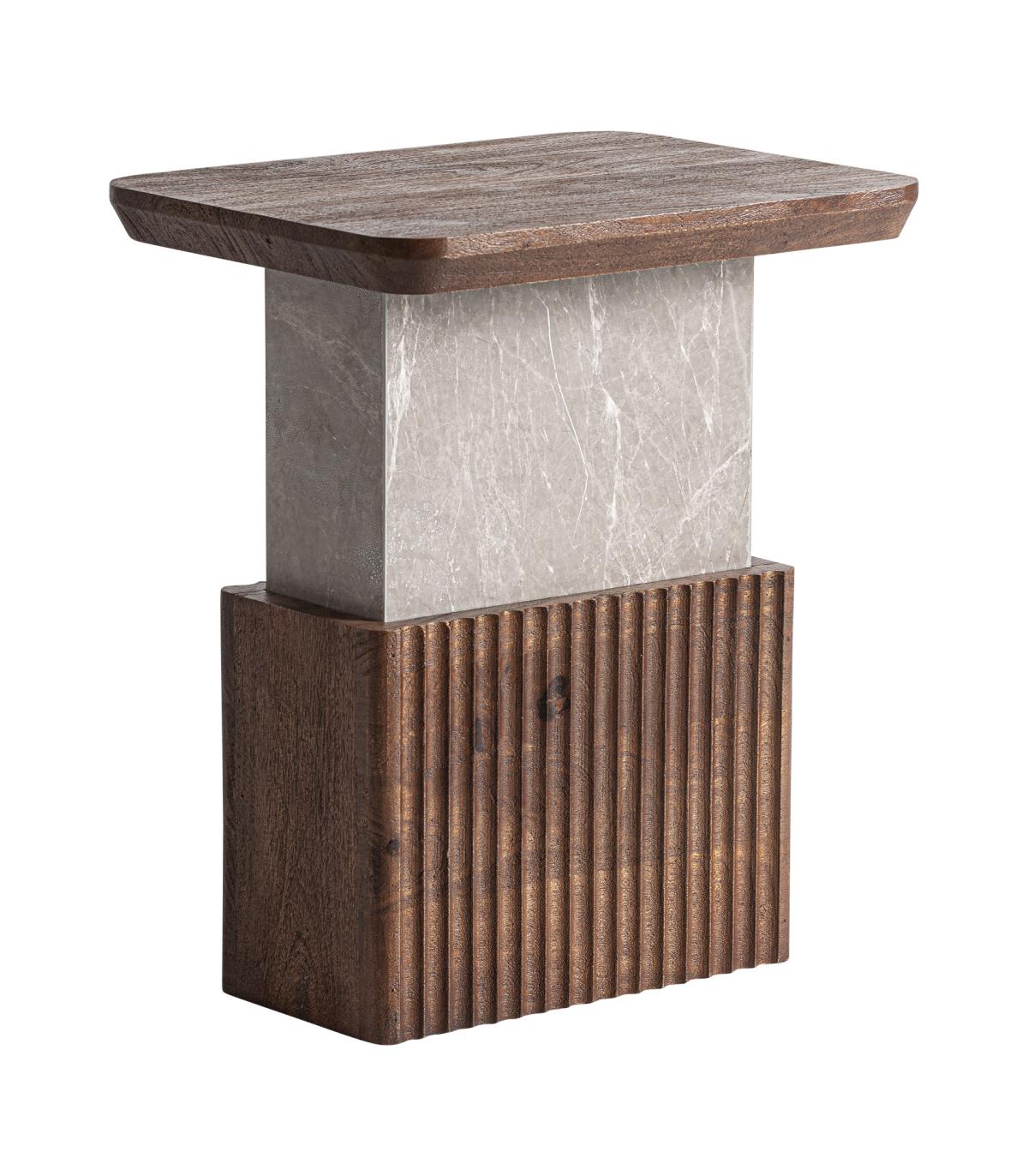 Mesa auxiliar Anzex de estilo contemporáneo fabricado en madera de mango en color marrón combinado con mármol en color gris con acabado veteado.