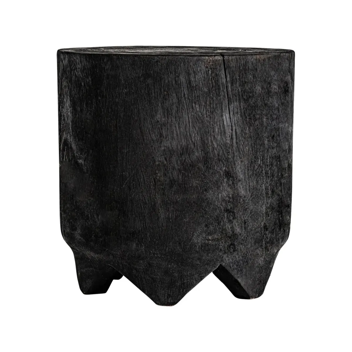 Mesa auxiliar kepoi, en color negro envejecido, de estilo étnico. Fabricado en madera suar carbonizada.