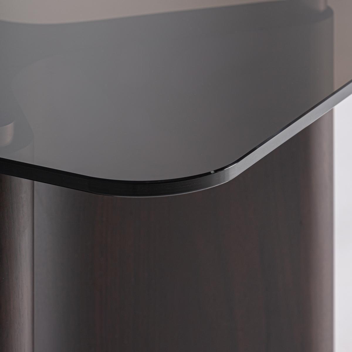 Mesa auxiliar Bransby de estilo contemporáneo fabricado en madera de fresno en color negro combinado con cristal en color gris con acabado templado. Producto desmontable.