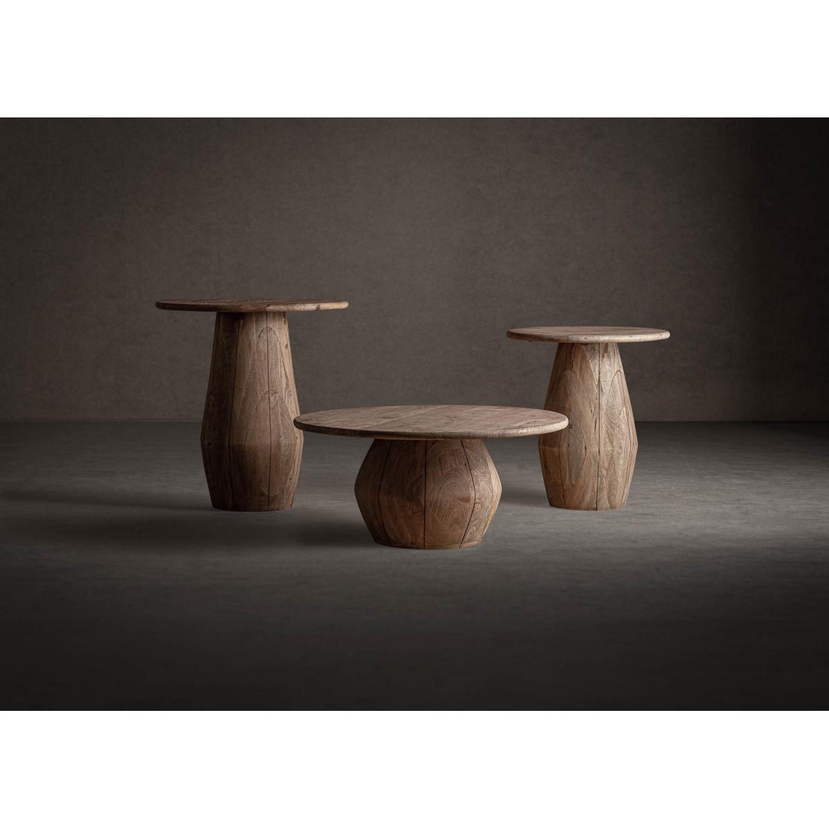 Mesa auxiliar jacquard de estilo contemporáneo. Fabricado en madera de mango en color marrón claro.