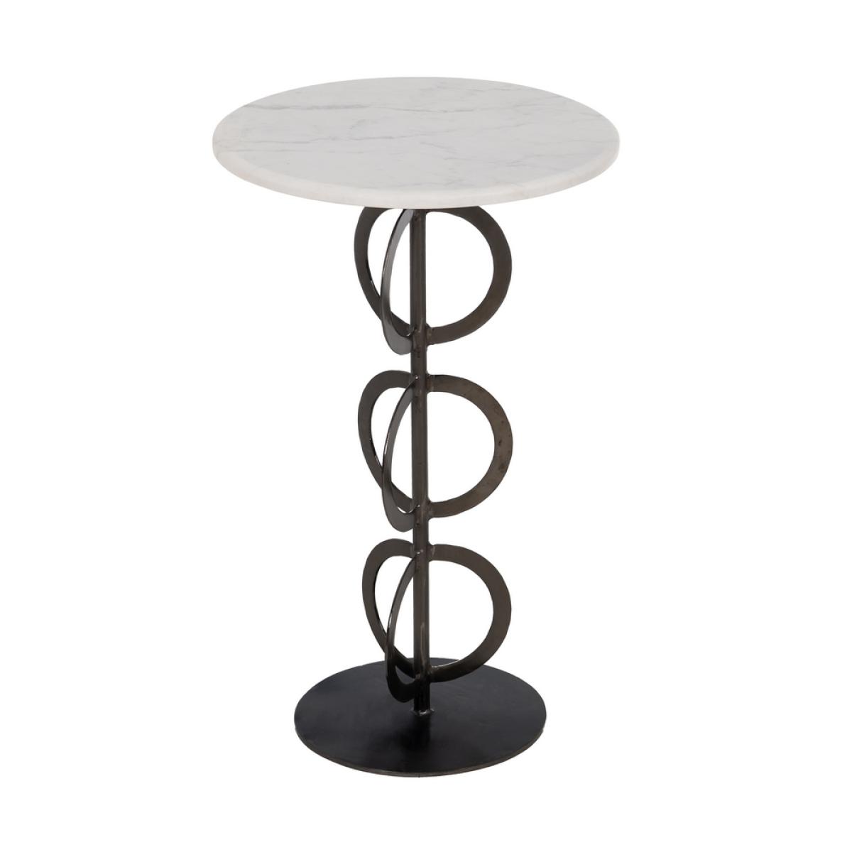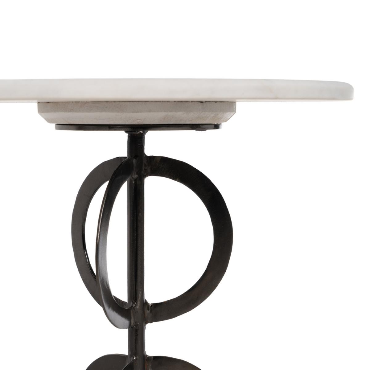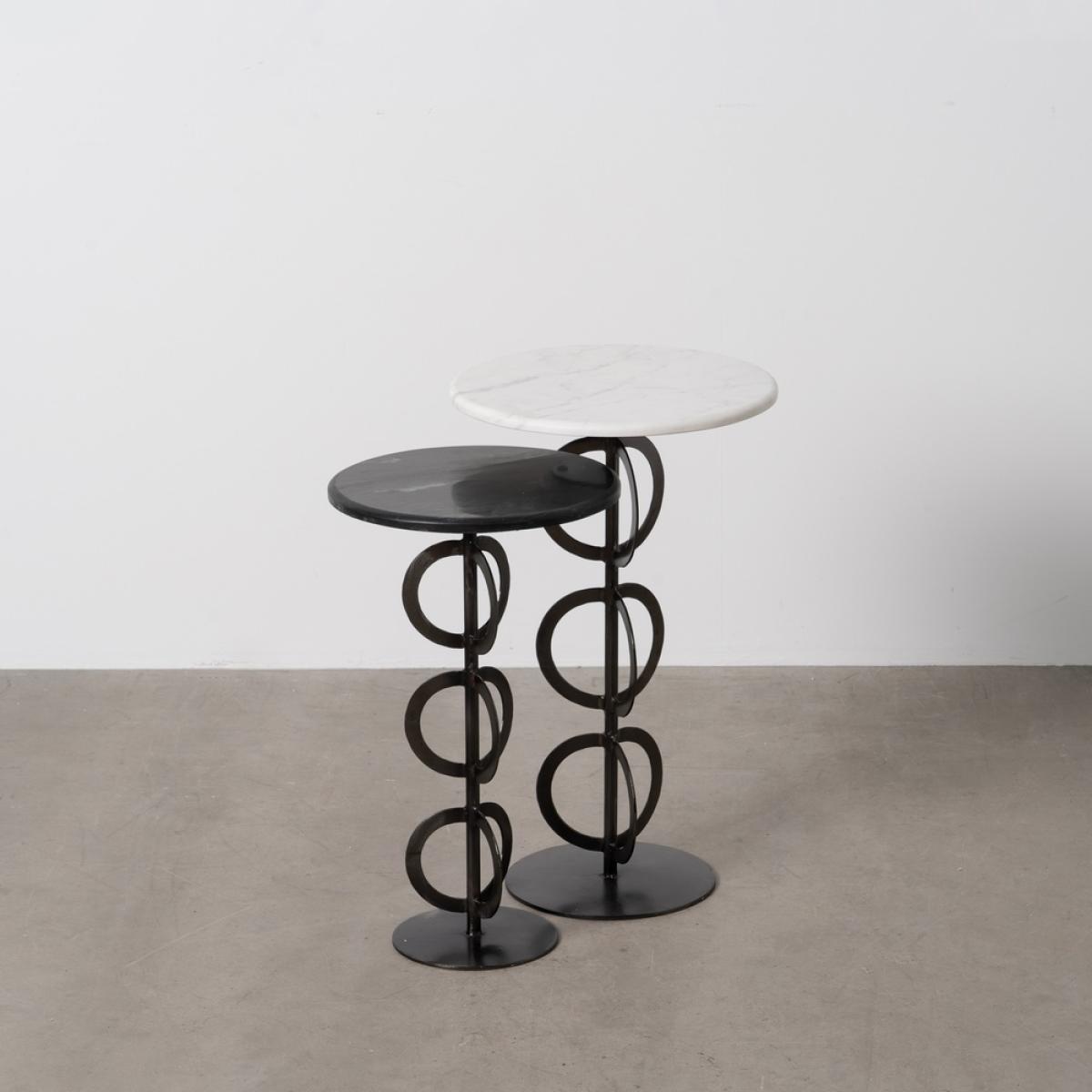 S/2 MESA AUXILIAR BLANCO-NEGRO 38 X 38 X 63 CM Material: mármol, hierro. Medidas: 38x38x63xm - 33x33x56cm. El mármol es un material natural que puede tener variaciones en su aspecto.